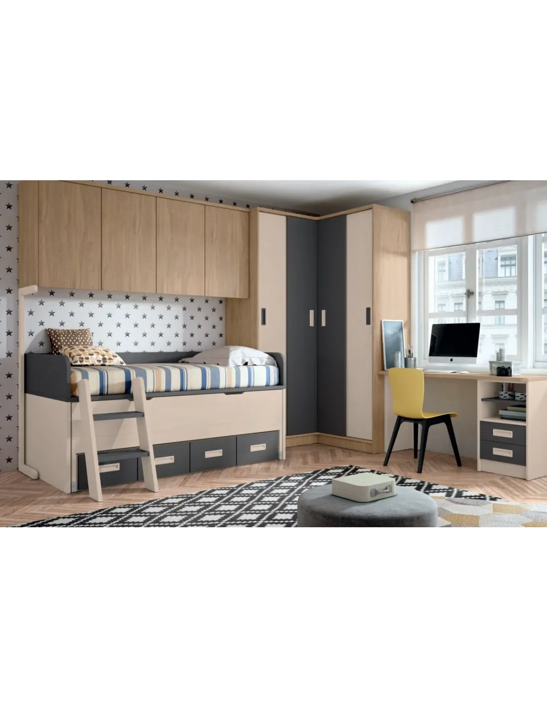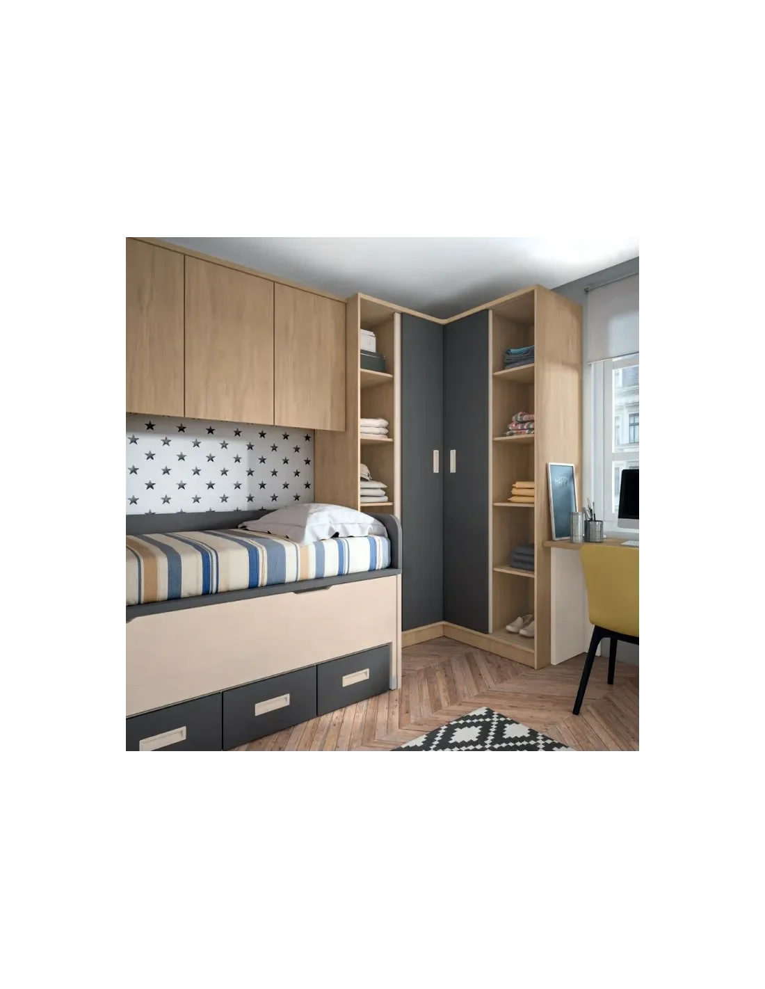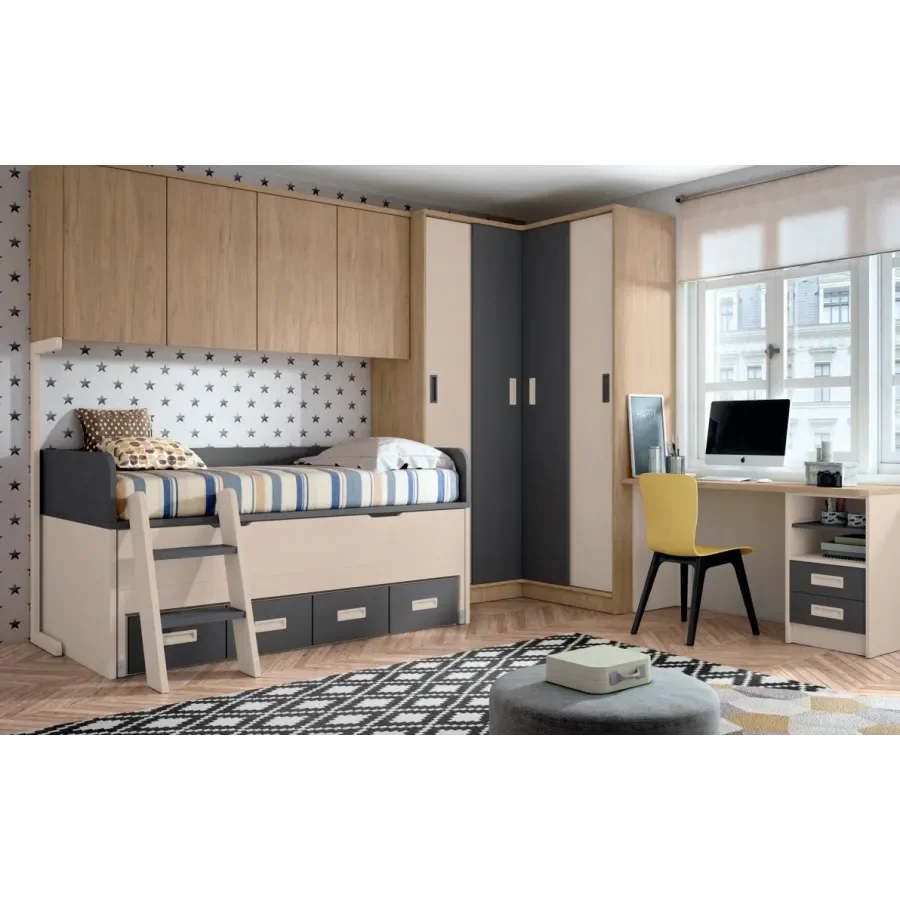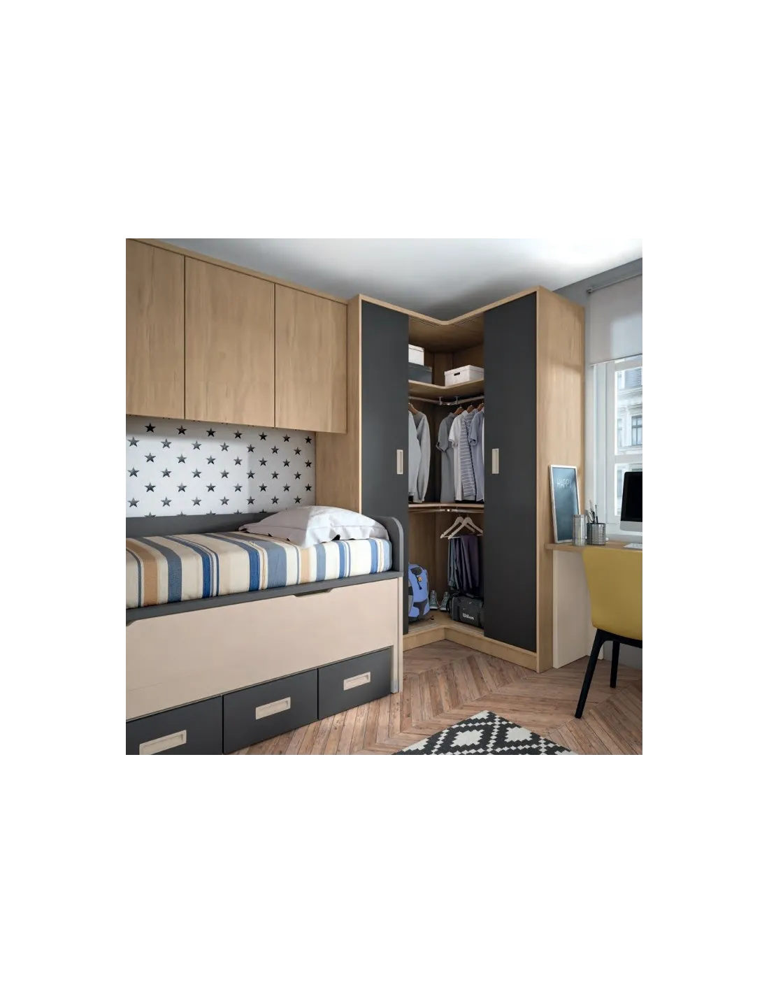 Composición juvenil con 344x285 cm. con cama compacta de dos camas de 90x190