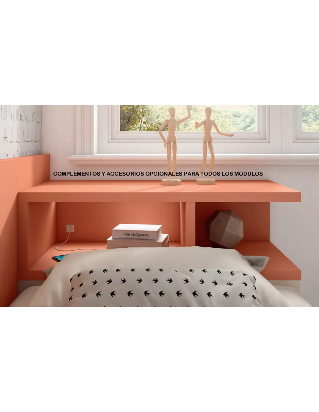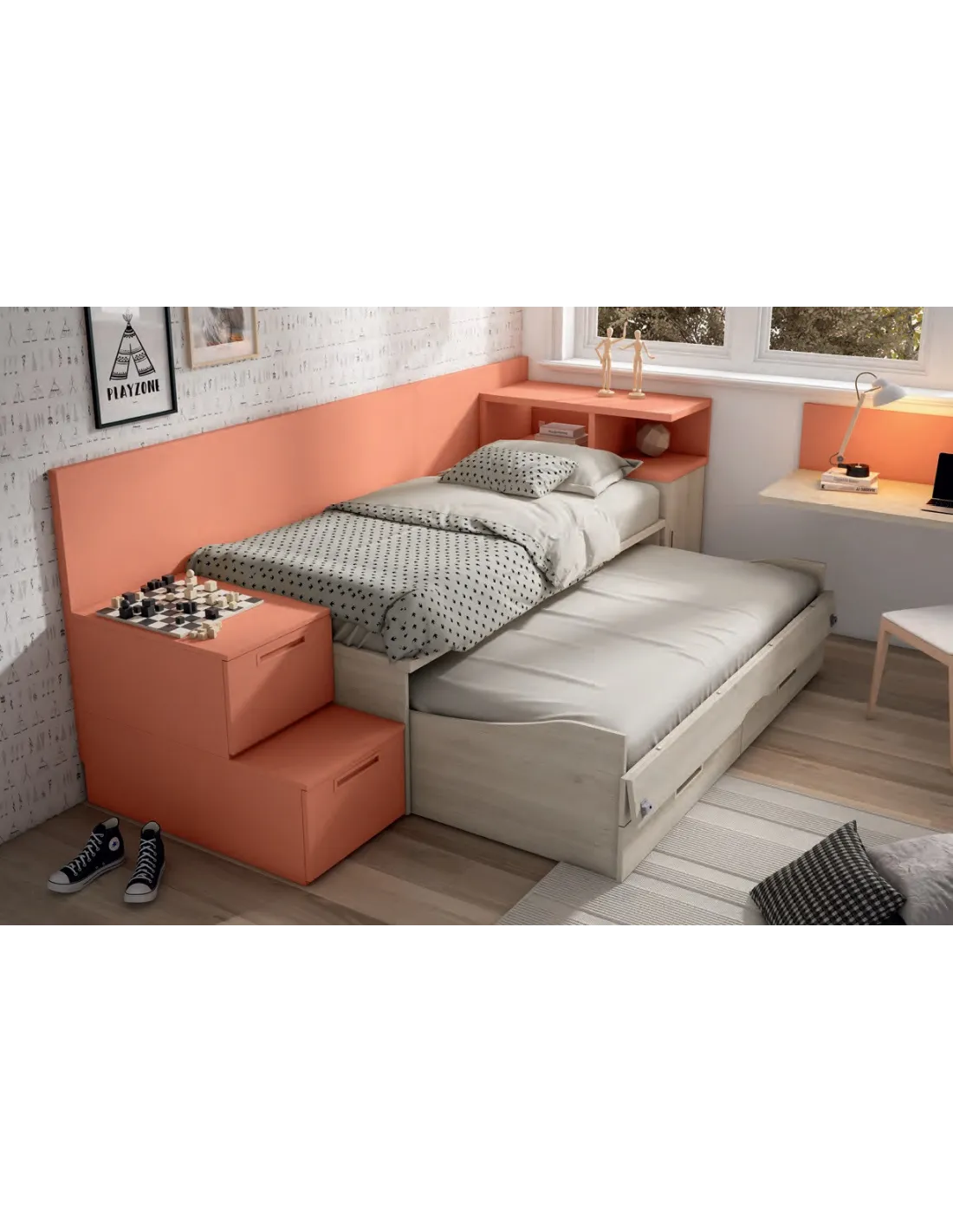 Esta litera abatible vienen disponible para personalizarla en base a los colores a aplicar y los complementos. Puede combinar dos o más colores en el mismo mueble. Todos los bases son a su vez complementarios: