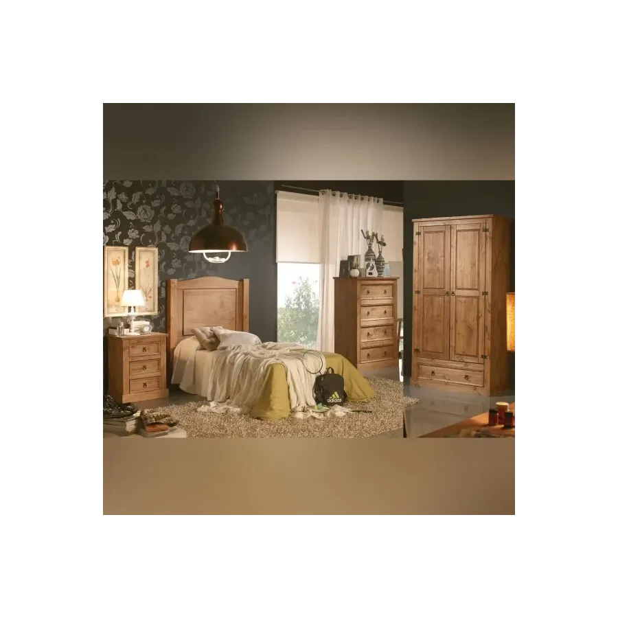 Dormitorio juvenil de estilo rústico en madera maciza de pino. Muebles de dormitorio de importación en formato kit.