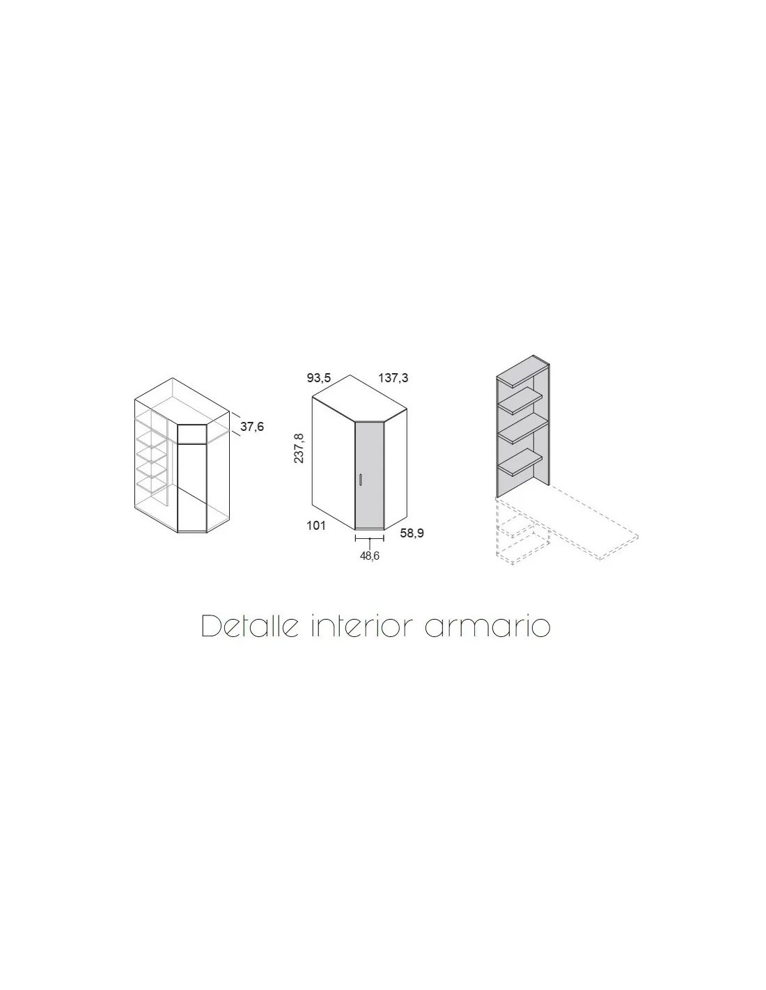 - Armario rincón chaflán con terminal estantería: 238 x 138 x119