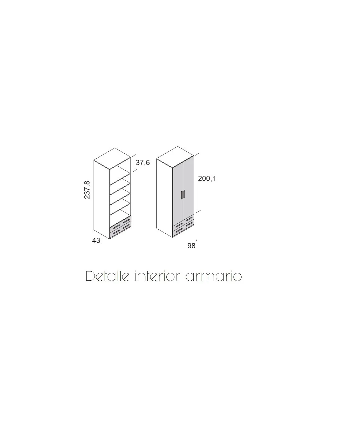 - Armario dos puertas dos cajones: 222 x 59 x 98