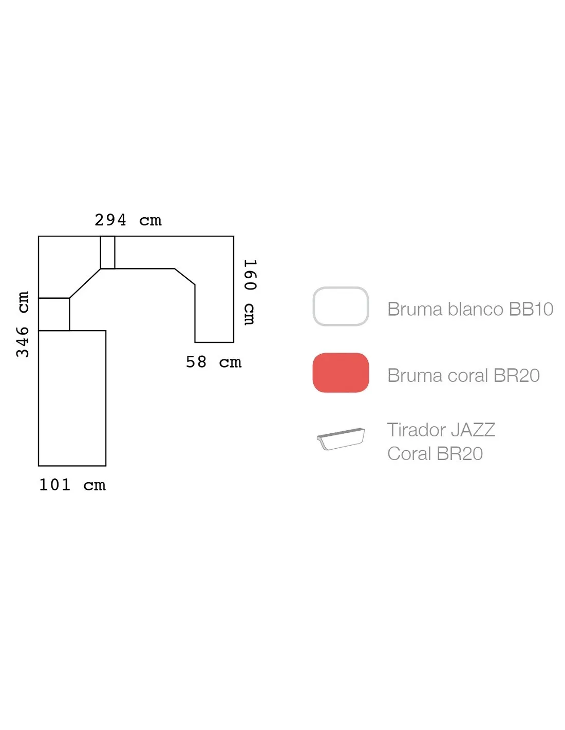 - Colores de combinación: aplicables a las partes de color bruma coral (guarderas de la cama, estantería terminal...).