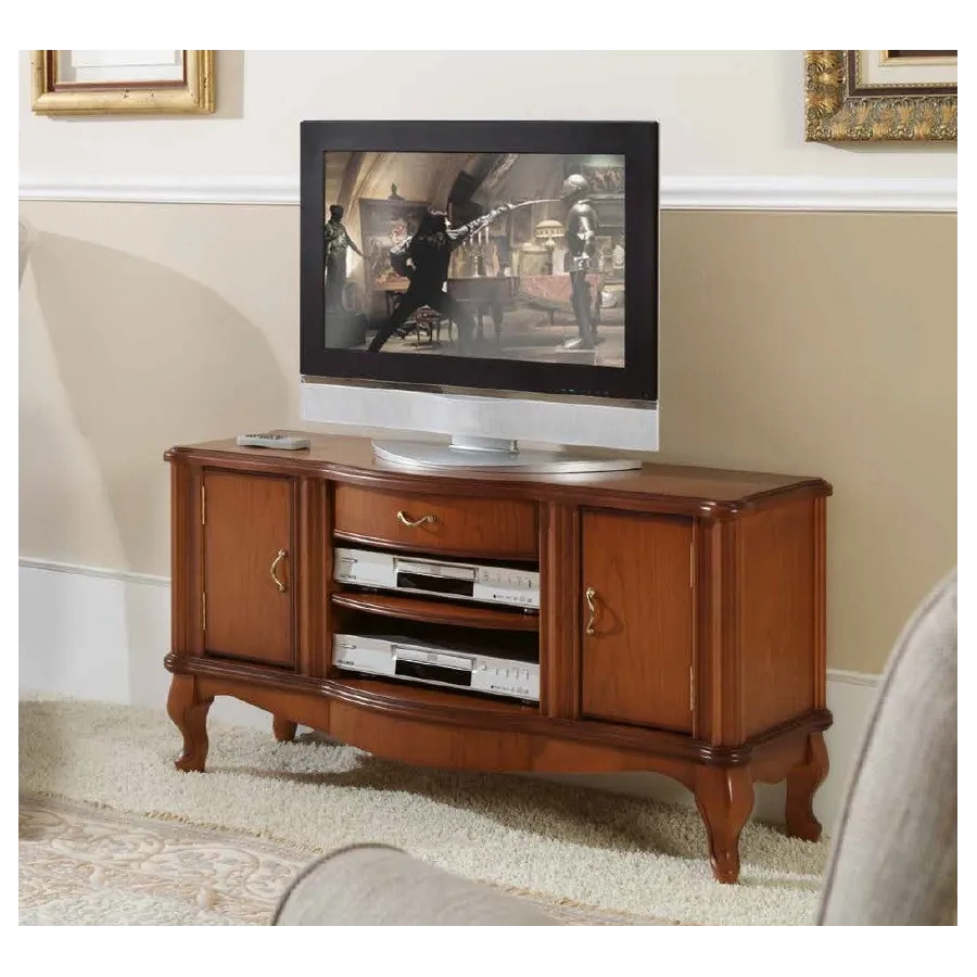 Si buscas muebles clásicos esta mesa de televisión puede ser una gran oportunidad. Estos muebles de lineas sinuosas e inspiración clásica dotan a cualquier rincón de casa de un aire clásico sofisticado, la calidez de sus materiales nobles y la espectacularidad de sus acabados. Muebles en madera de cerezo fabricados en España.