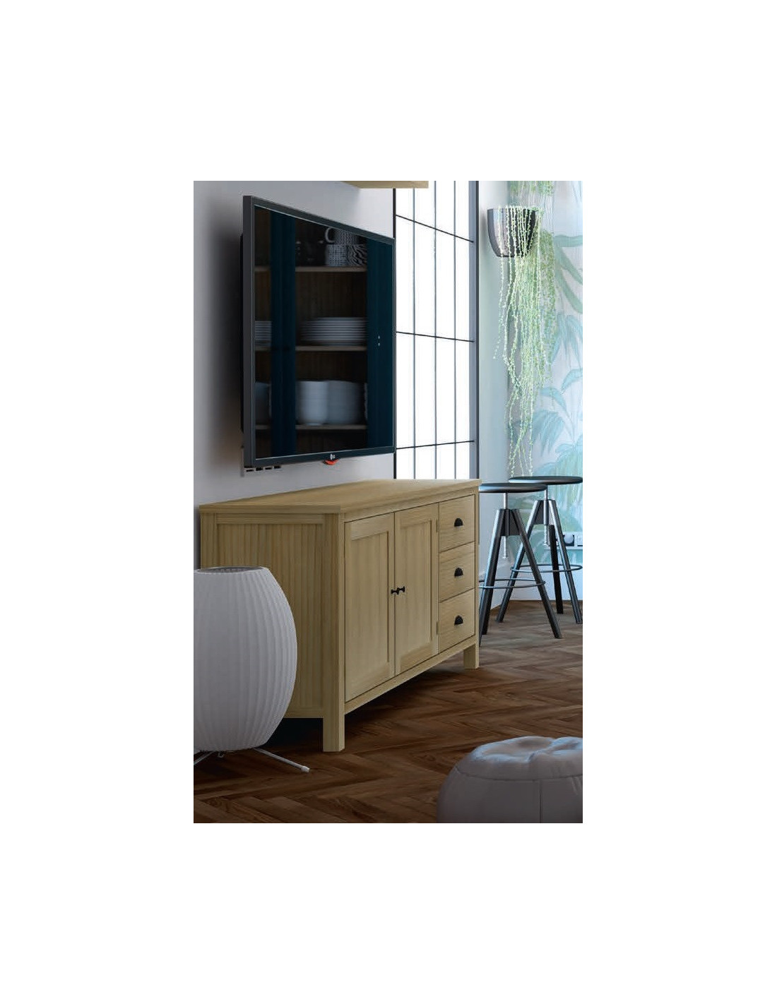 Mueble de televisión 3 cajones 150 cm. en madera de pino con variedad de acabados a escoger