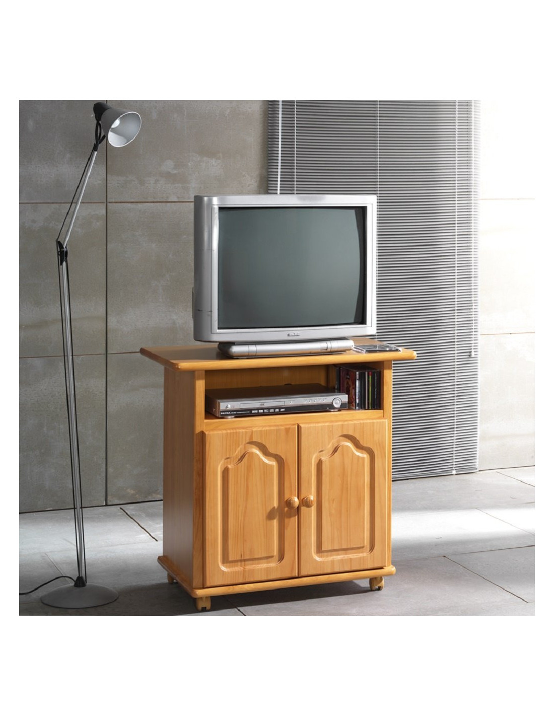 - Mesa tv Provenza dos puertas un hueco con ruedas: 77 cm. de alto, 80 cm. de largo y 45 cm. de fondo.