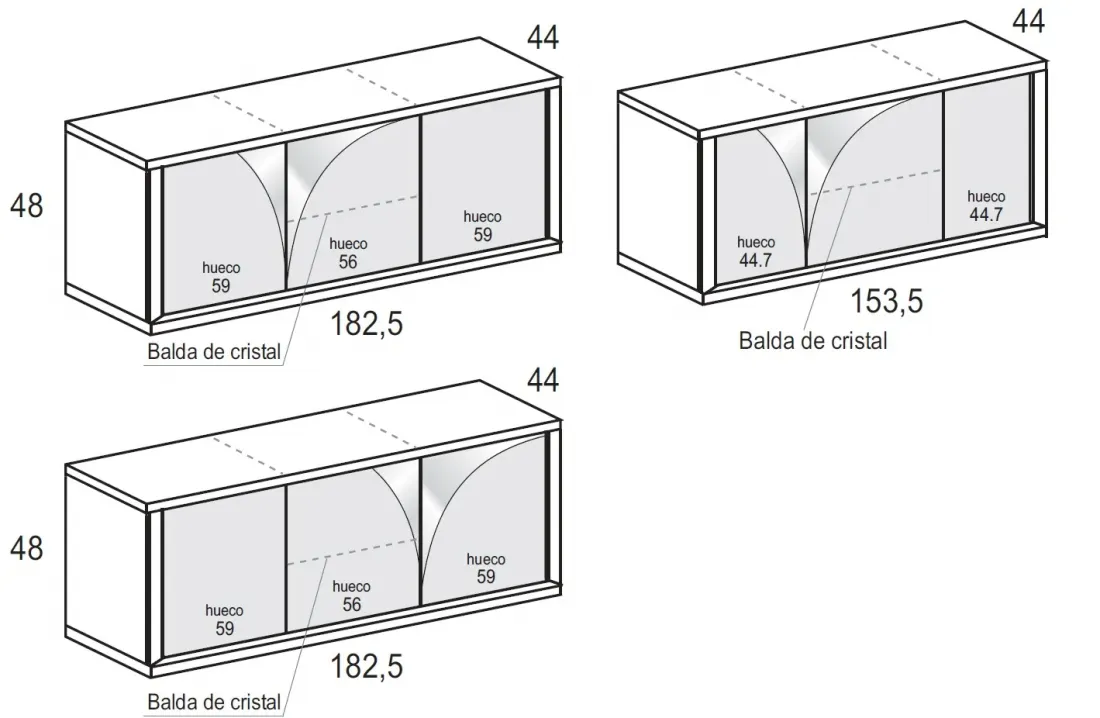Todas las vitrinas y cuerpos altos llevan incluidos en su dotación herraje para fijarlos a la pared. Es imprescindible su fijación a pared por motivos de seguridad.