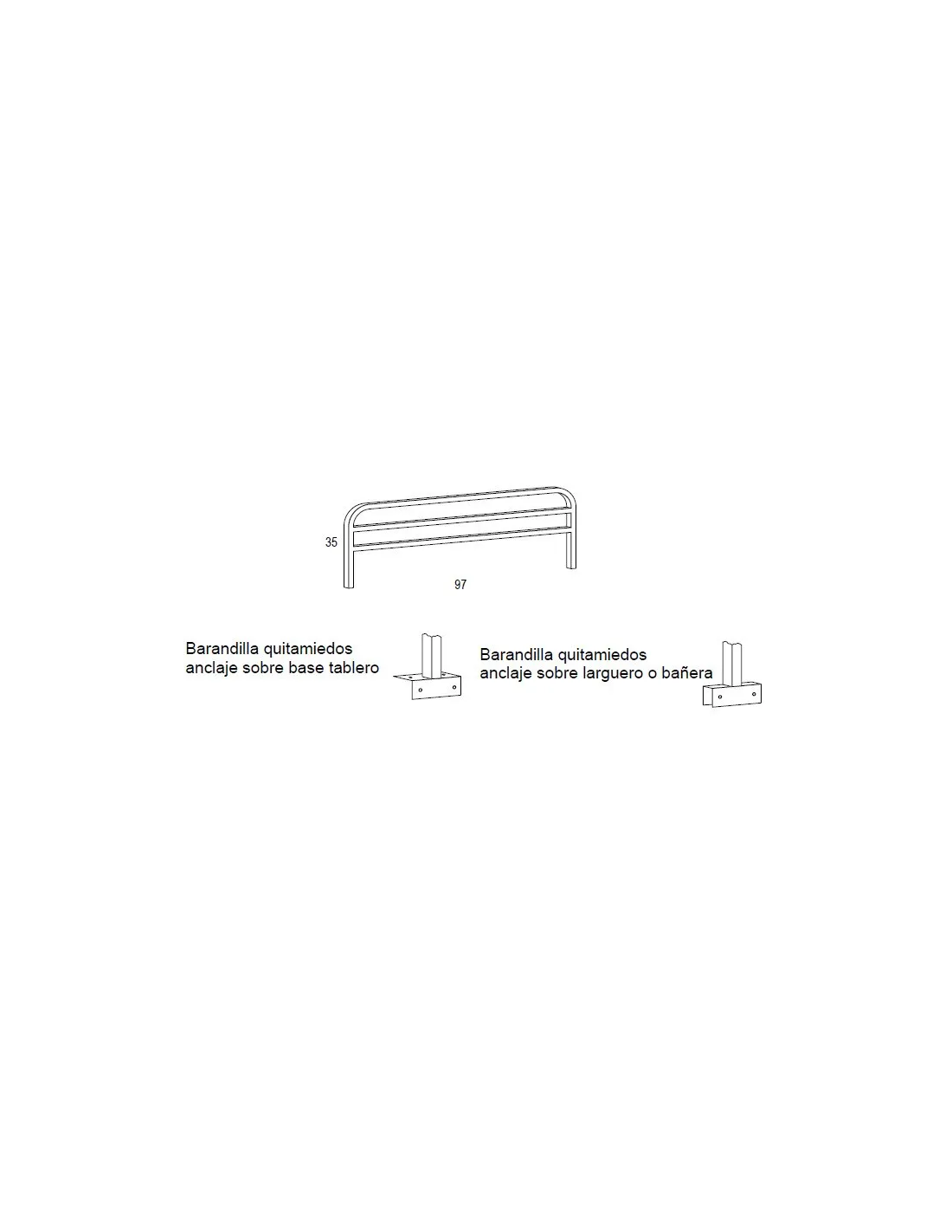 Barandilla metálica quitamiedos para litera juvenil de la serie 53. Color único plata.