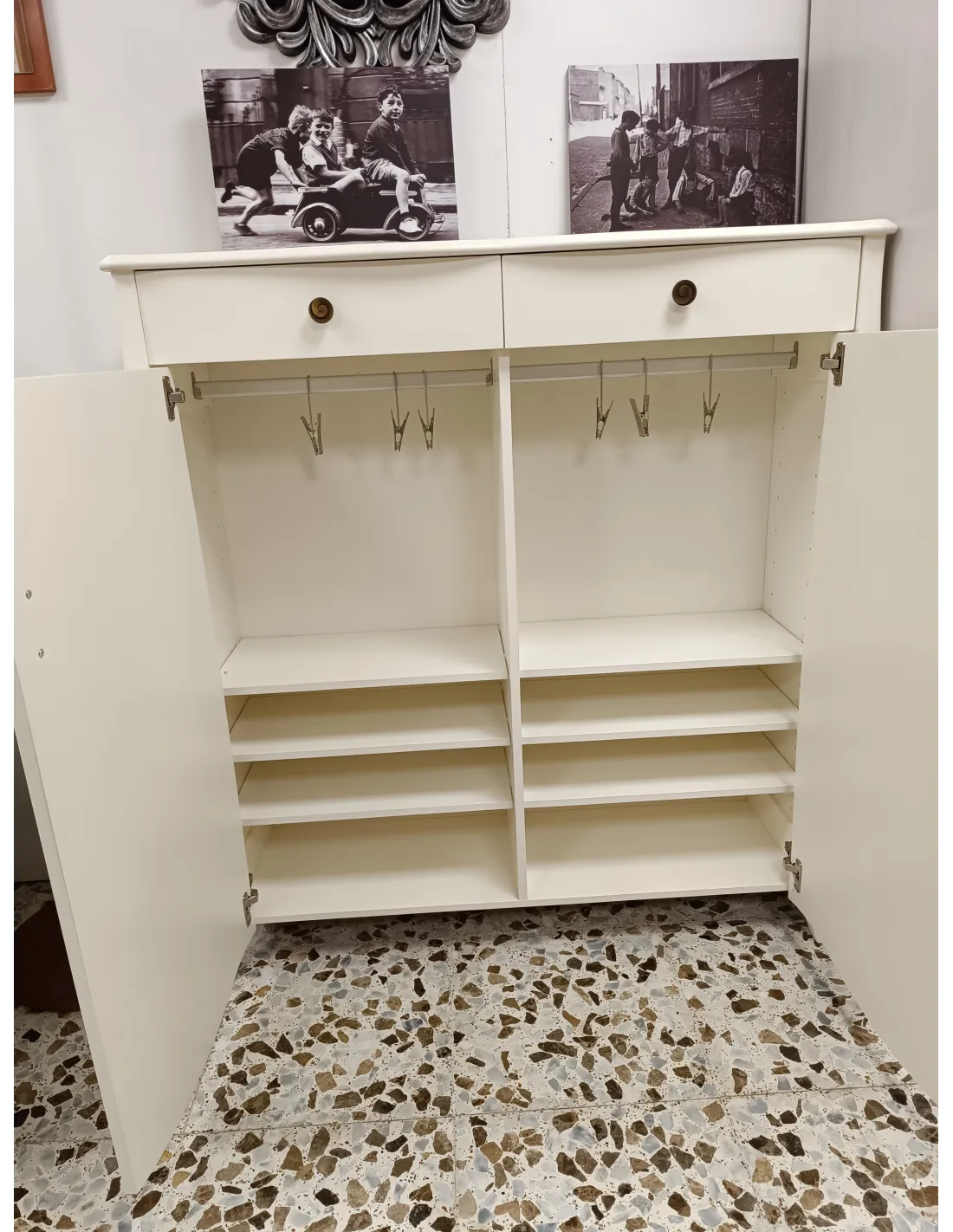 En su interior cuenta con baldas ajustables en altura así como perchas para colgar calzado.