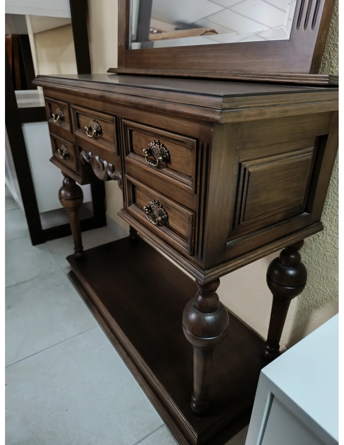 Recibidor de diseño moderno con espejo y pata metálica antracita