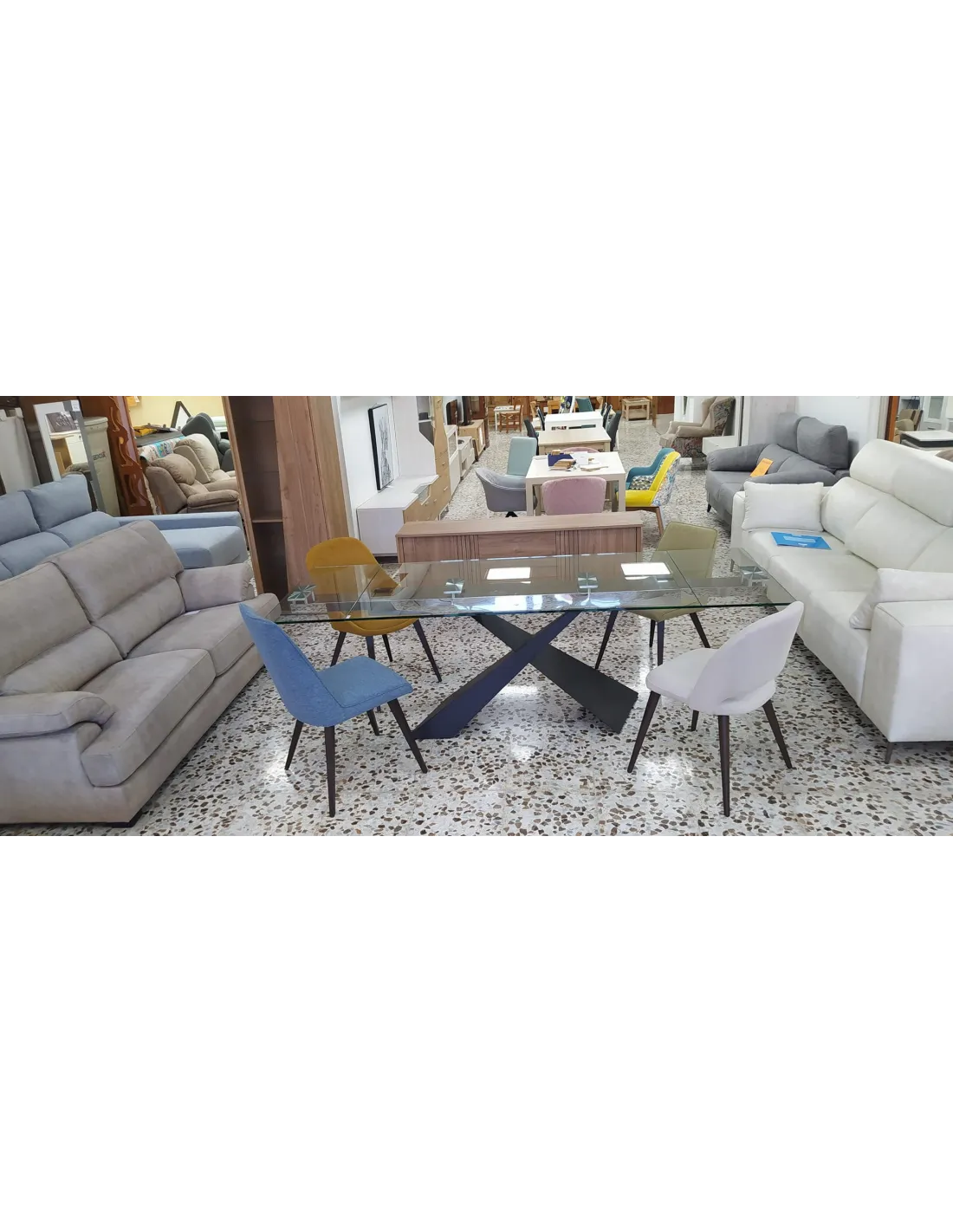 MESA DE COMEDOR CRISTAL LARGO 160 CM. CON 2 EXTENSIBLES DE 40 CM. CADA UNO.