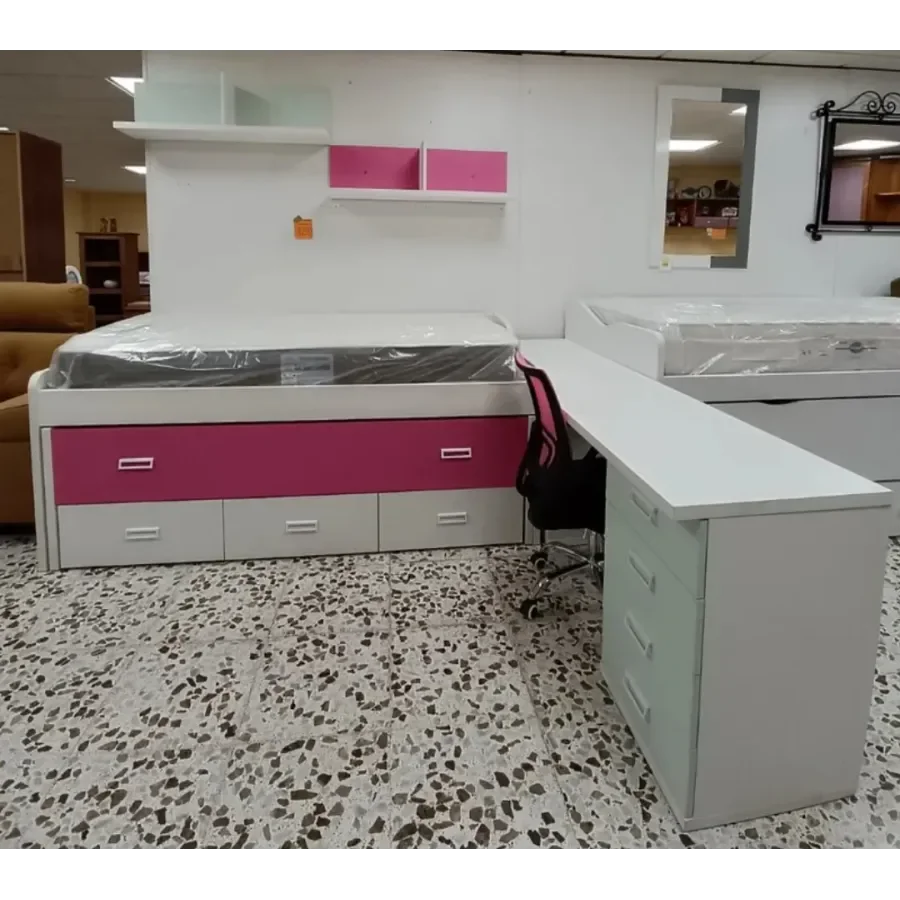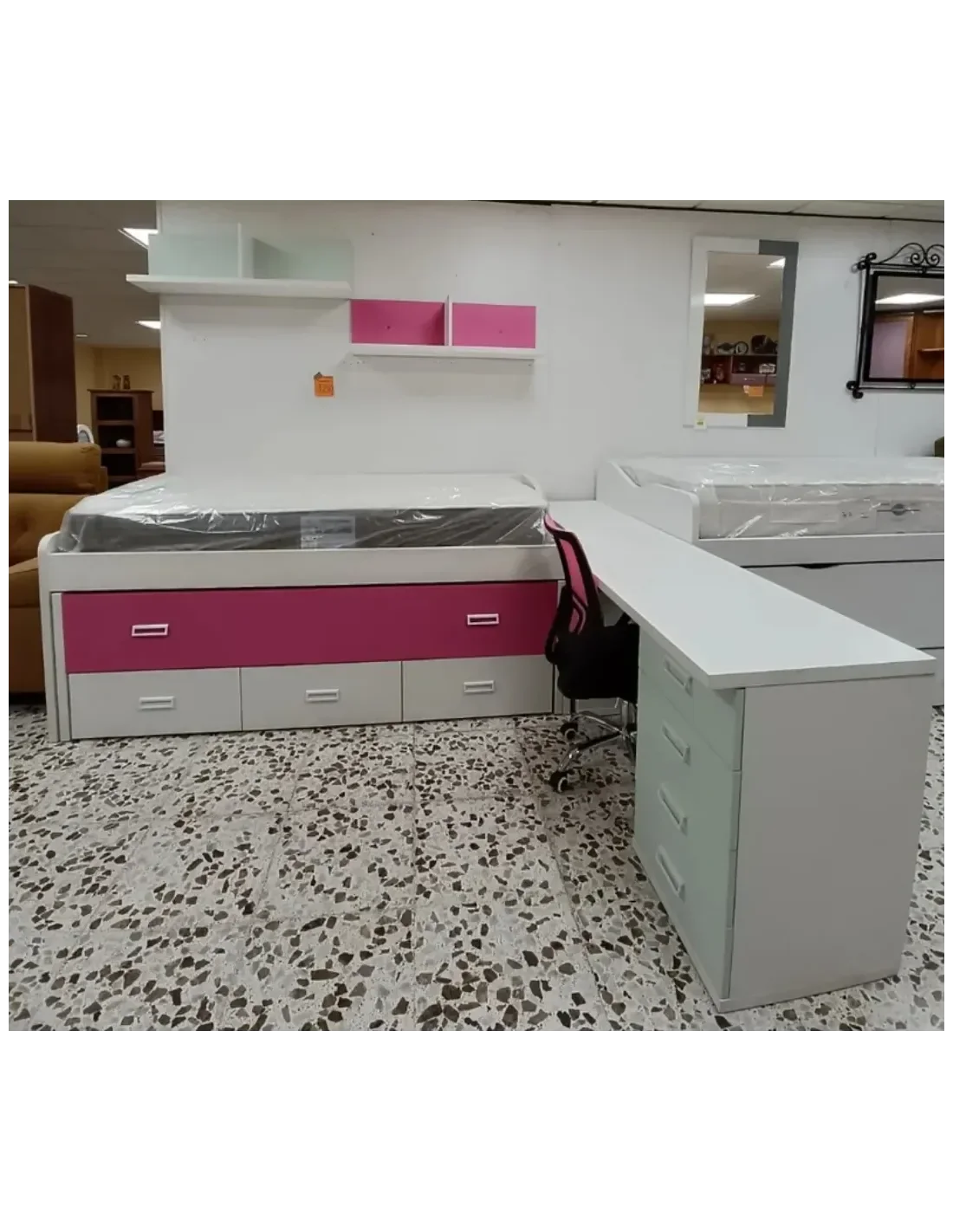 - módulo de cama compacta (90x190 + 90x180 cm.) con cajones de gran capacidad con guías metálicas.