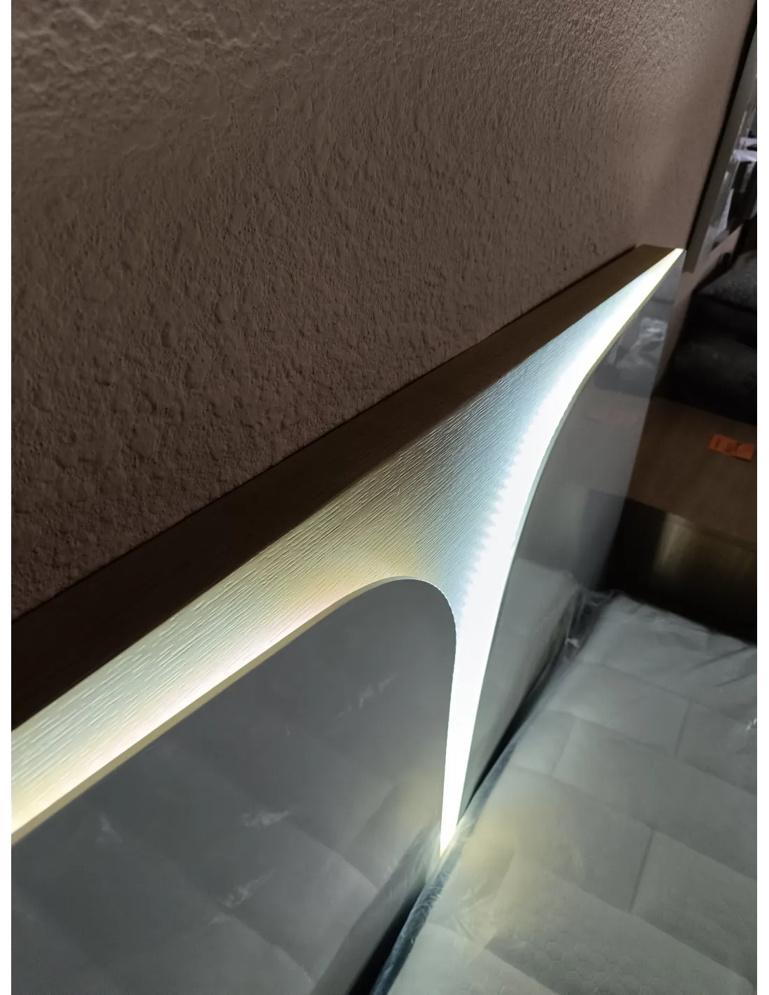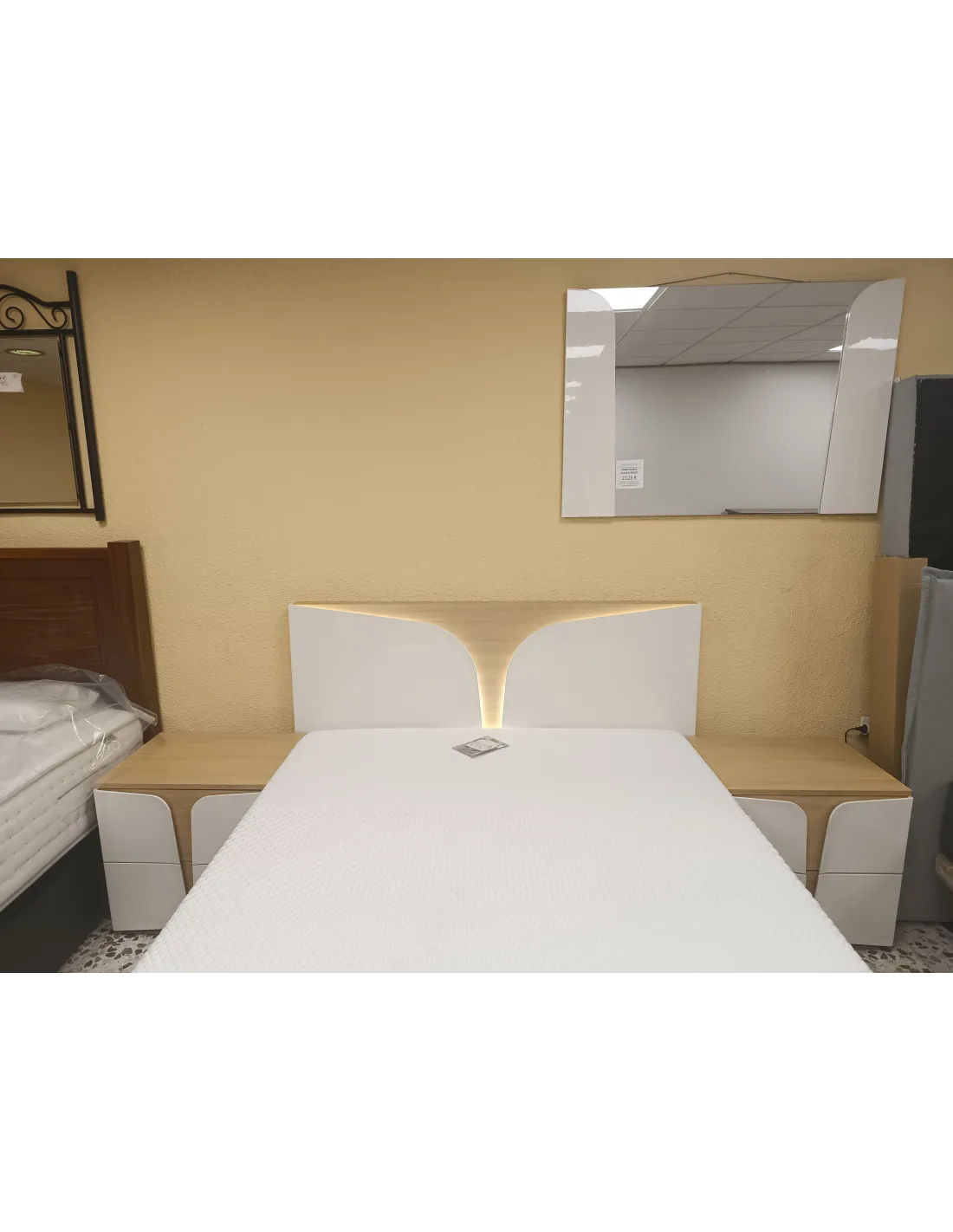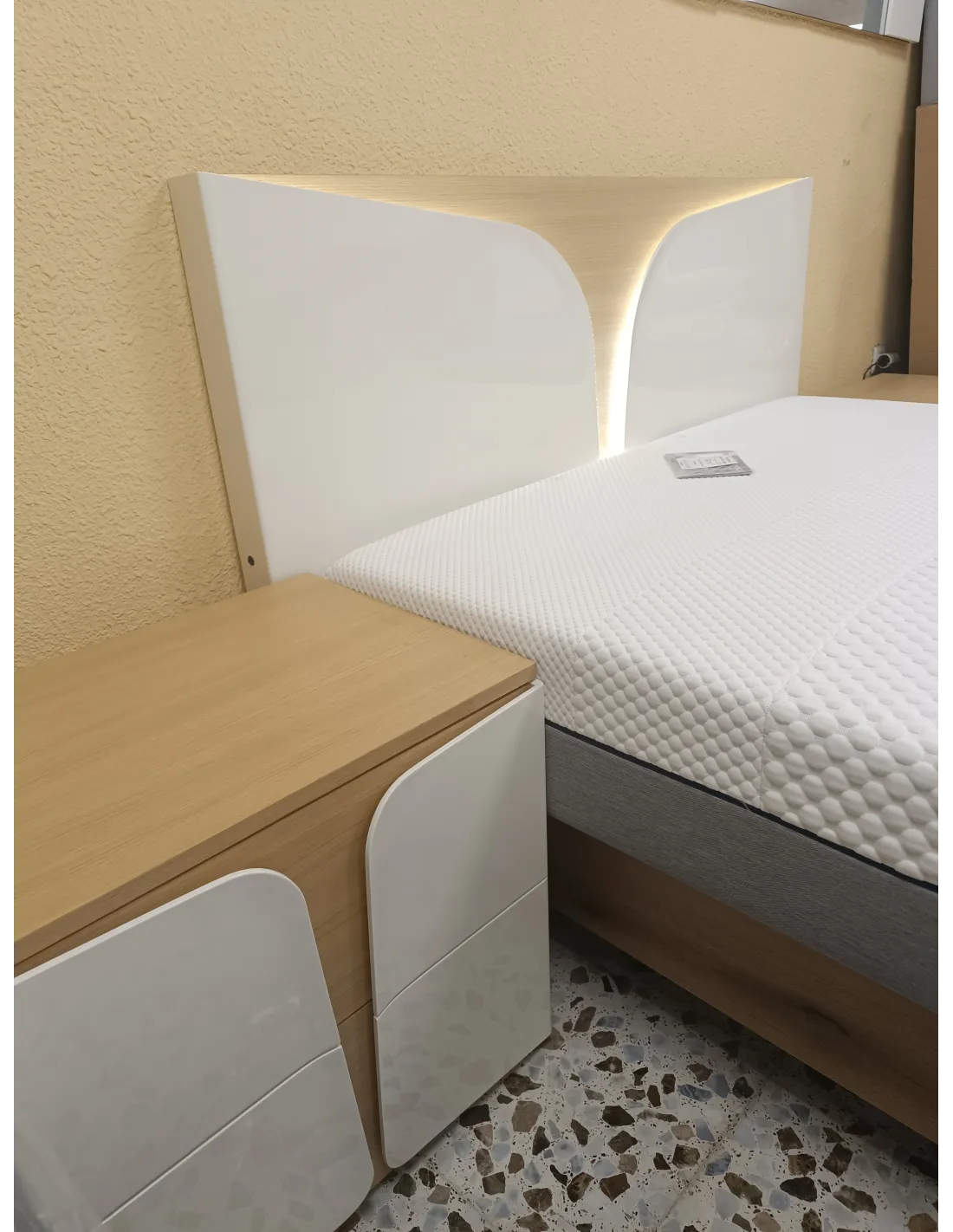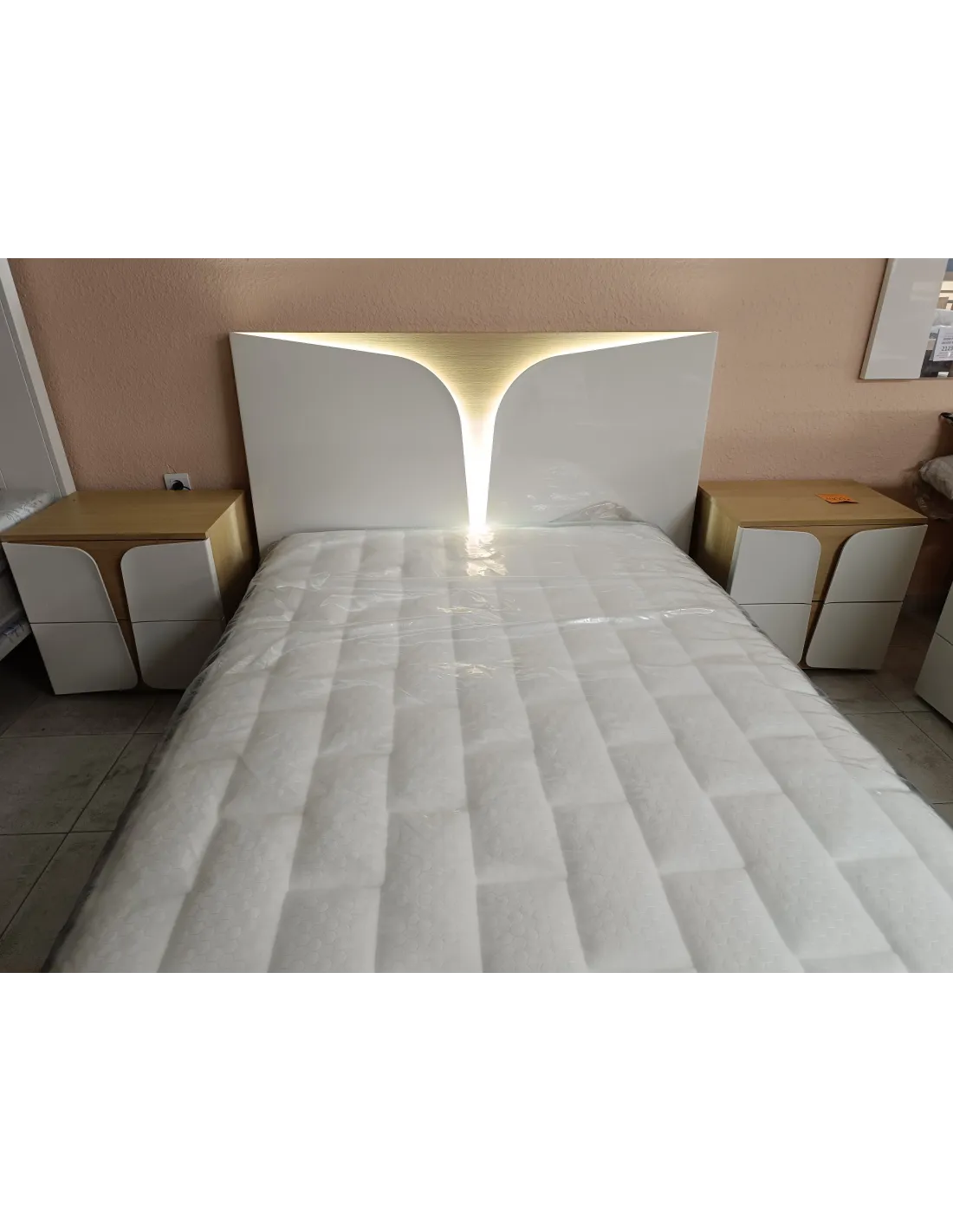 Cabecero con luces led en los dos lados, con accionamiento independiente. Preparado para camas de 150 cm.