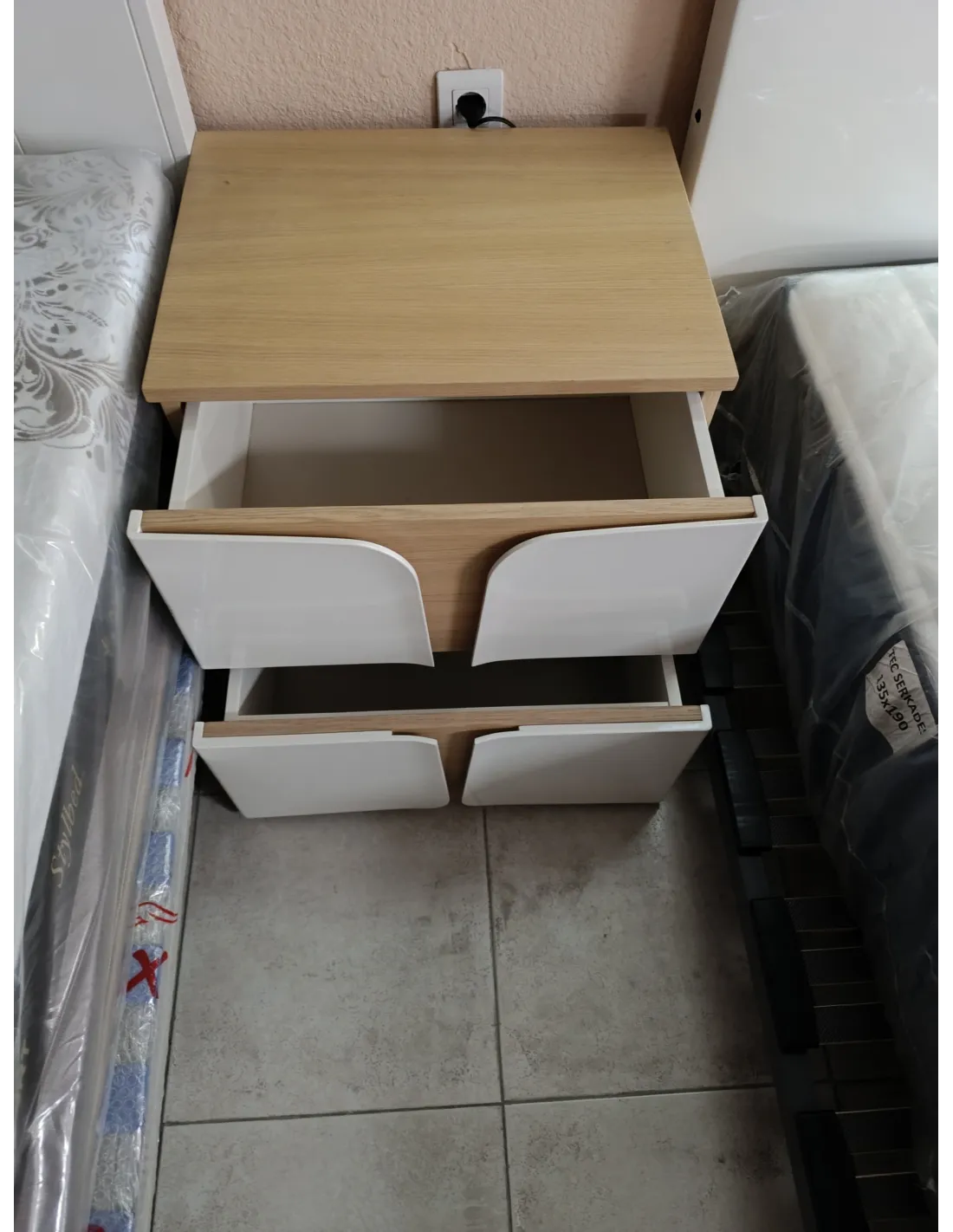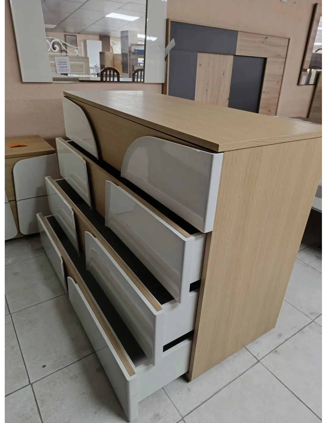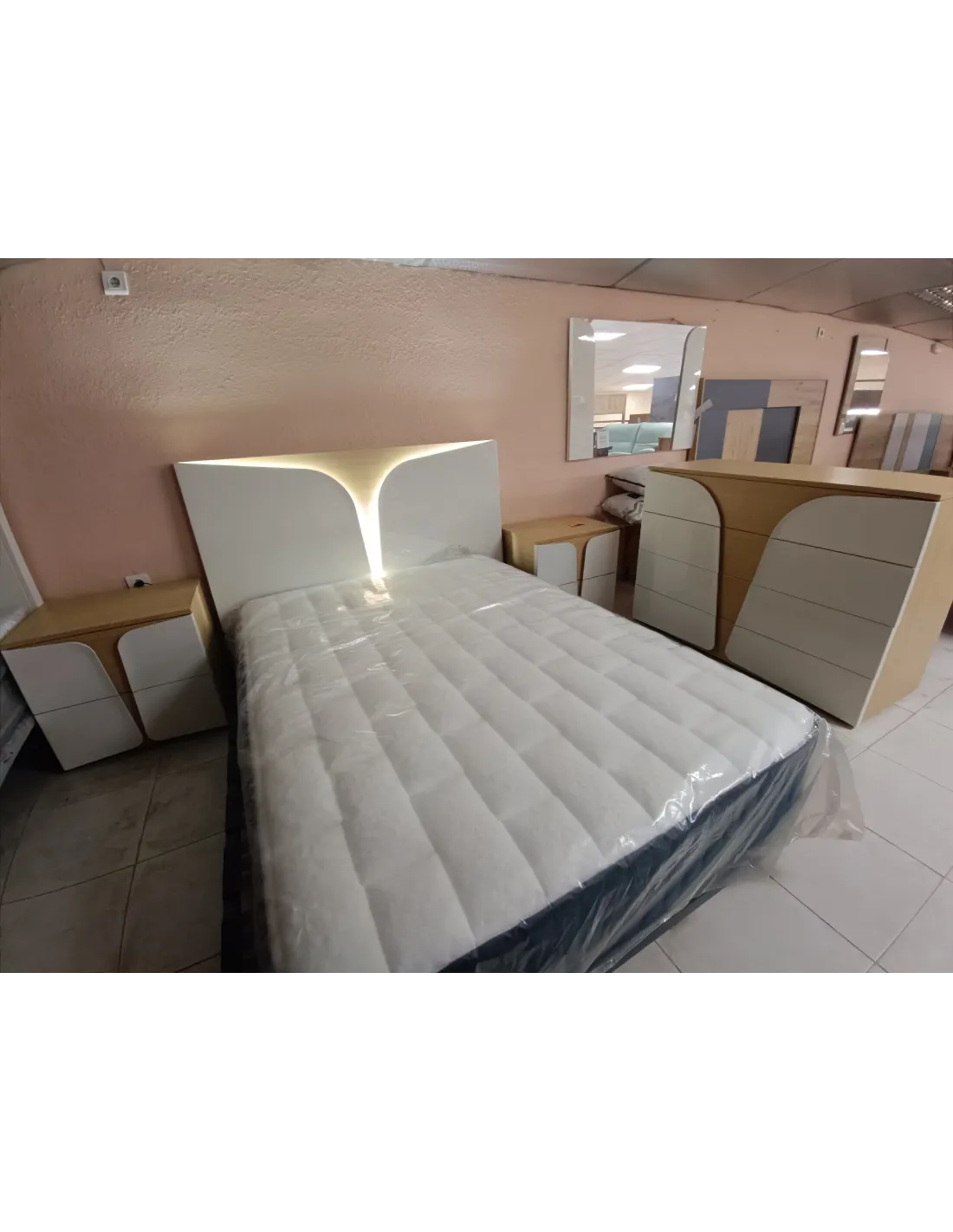 Cajones de gran capacidad con cierre automático. Acabados de alta calidad. Compuesto por cabecero, 2 mesitas, cómoda y espejo.
