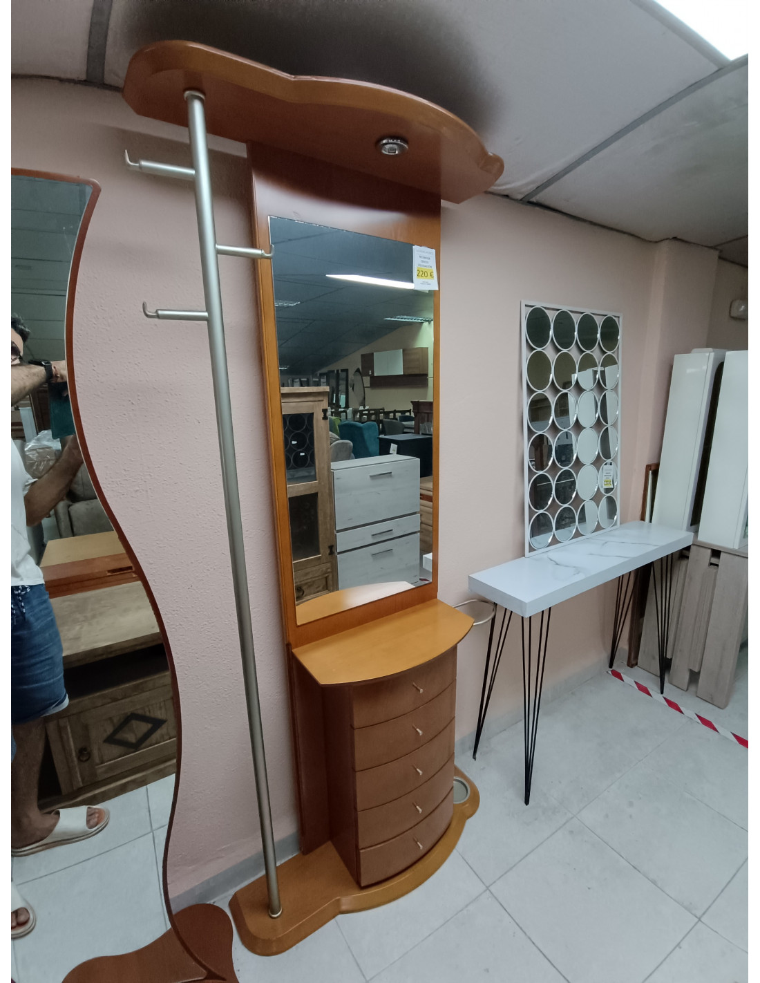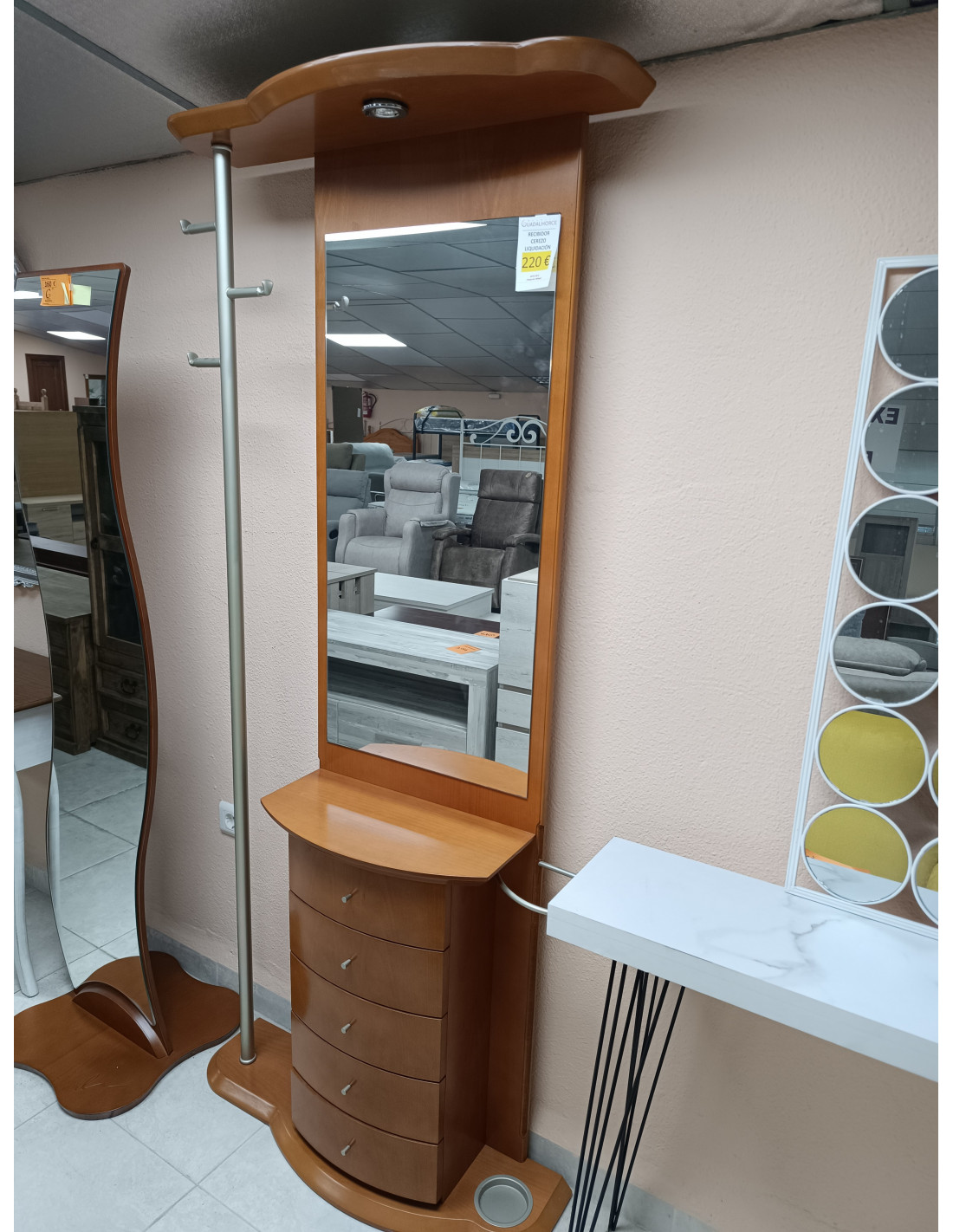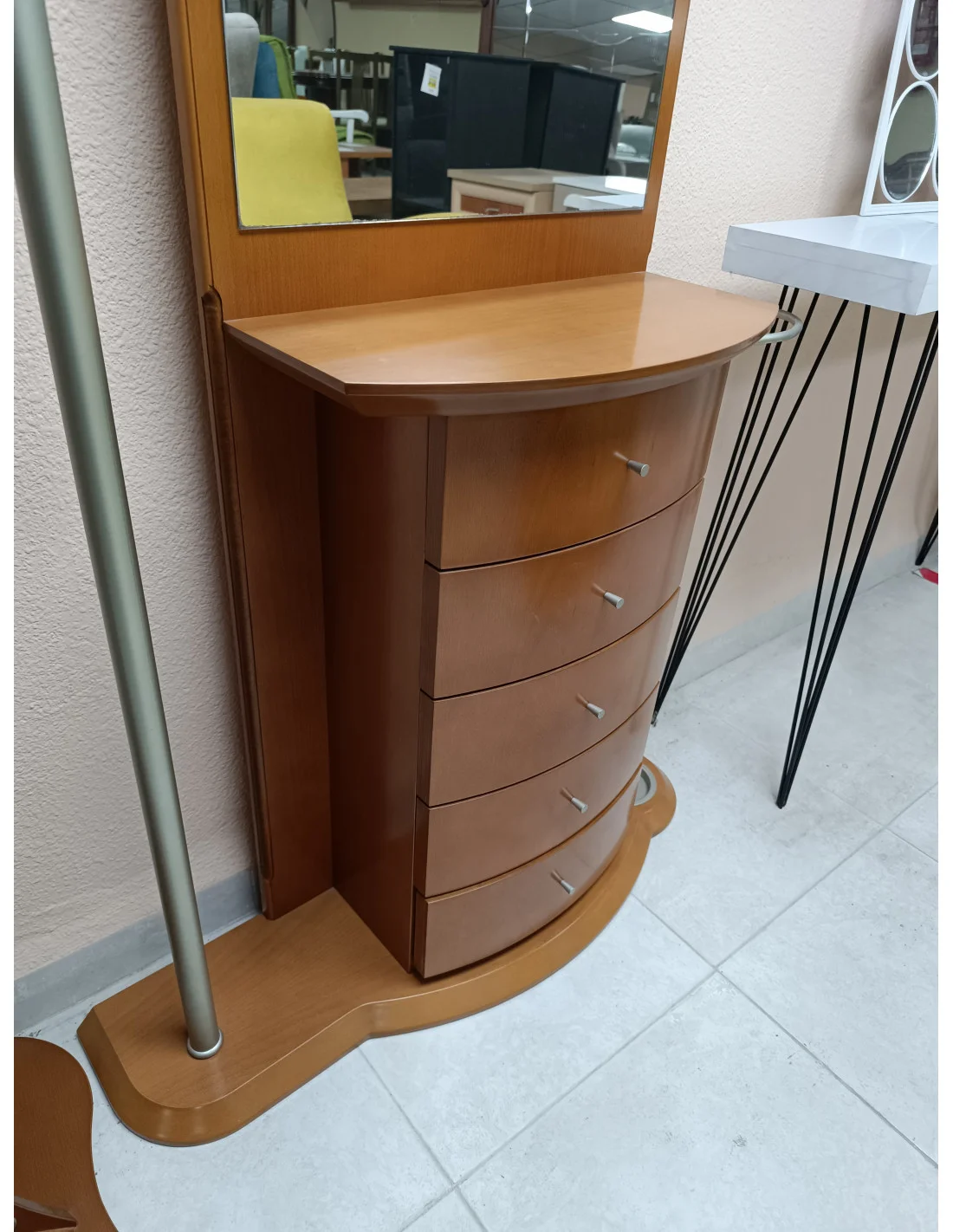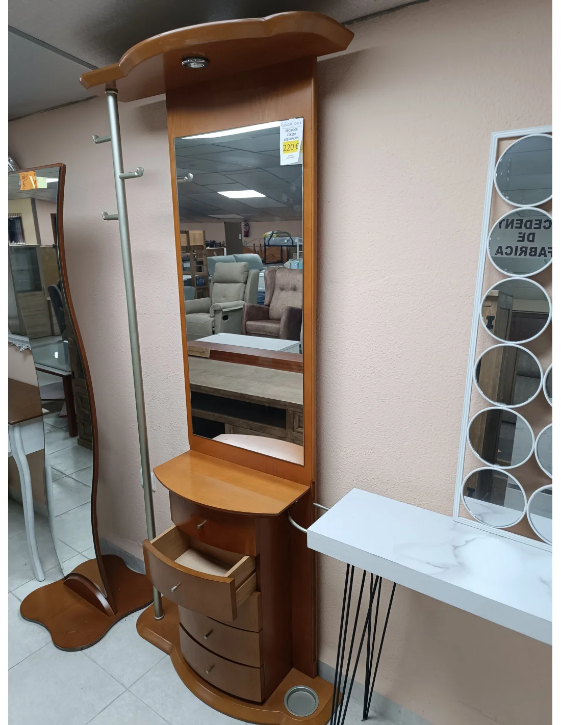 Recibidor color cerezo con cajones, perchero, paragüero y luz.