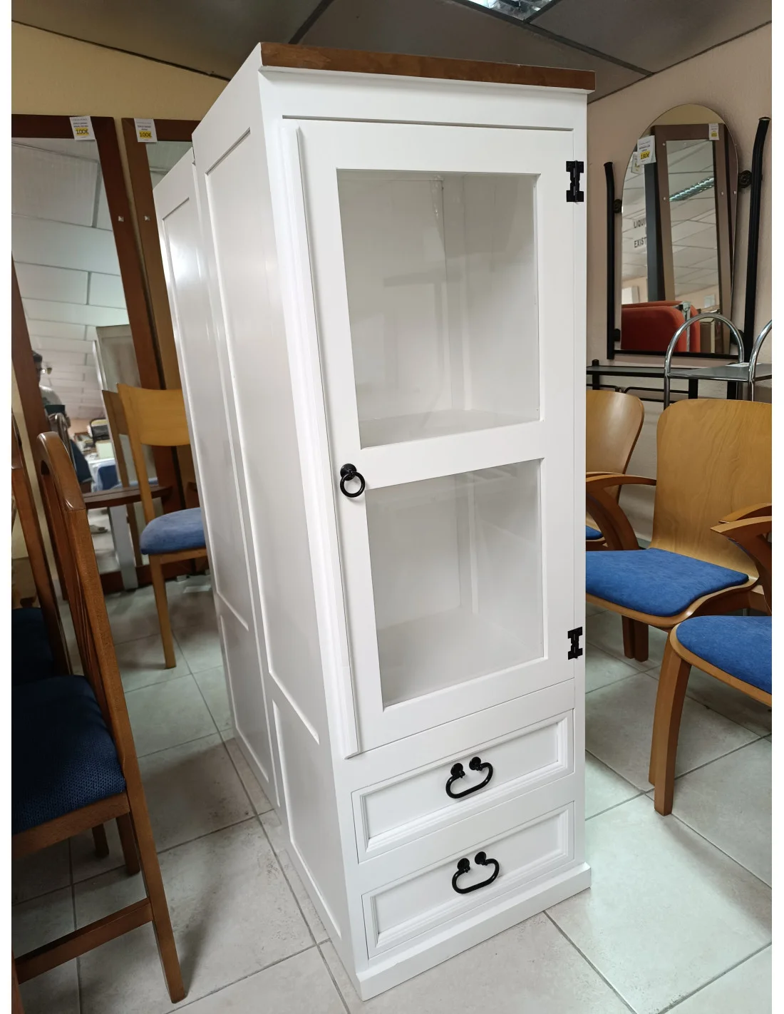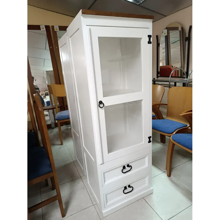 Vitrina lacada blanco con tapas en roble fabricadas en madera. Solo 2 unidades disponibles.