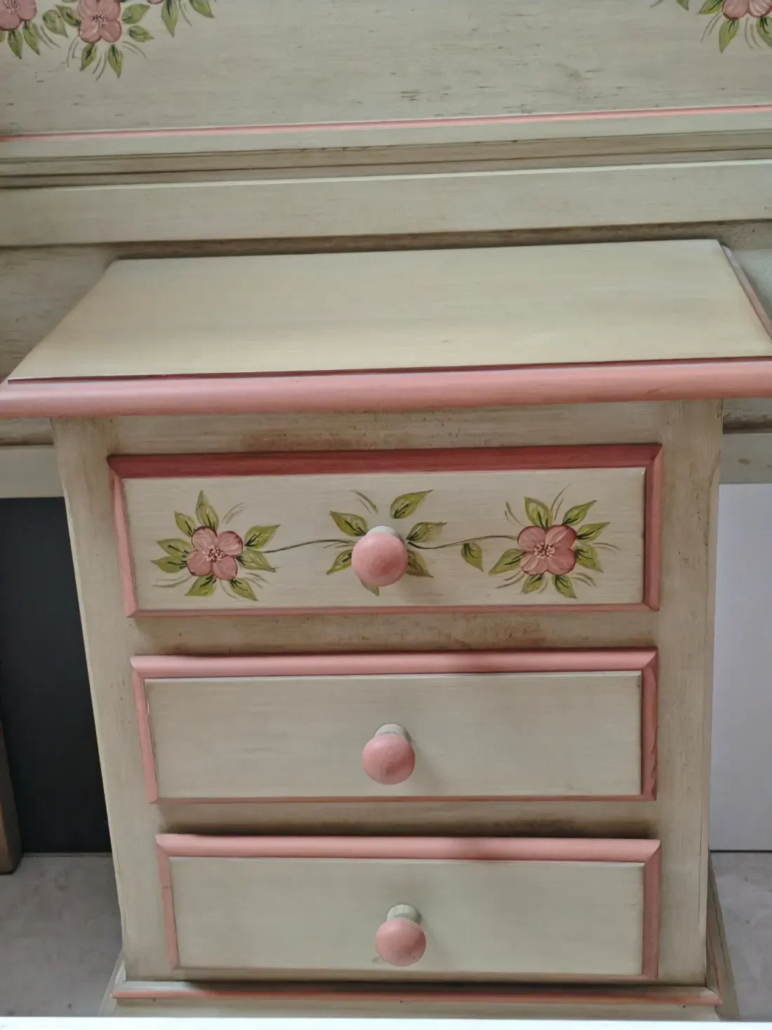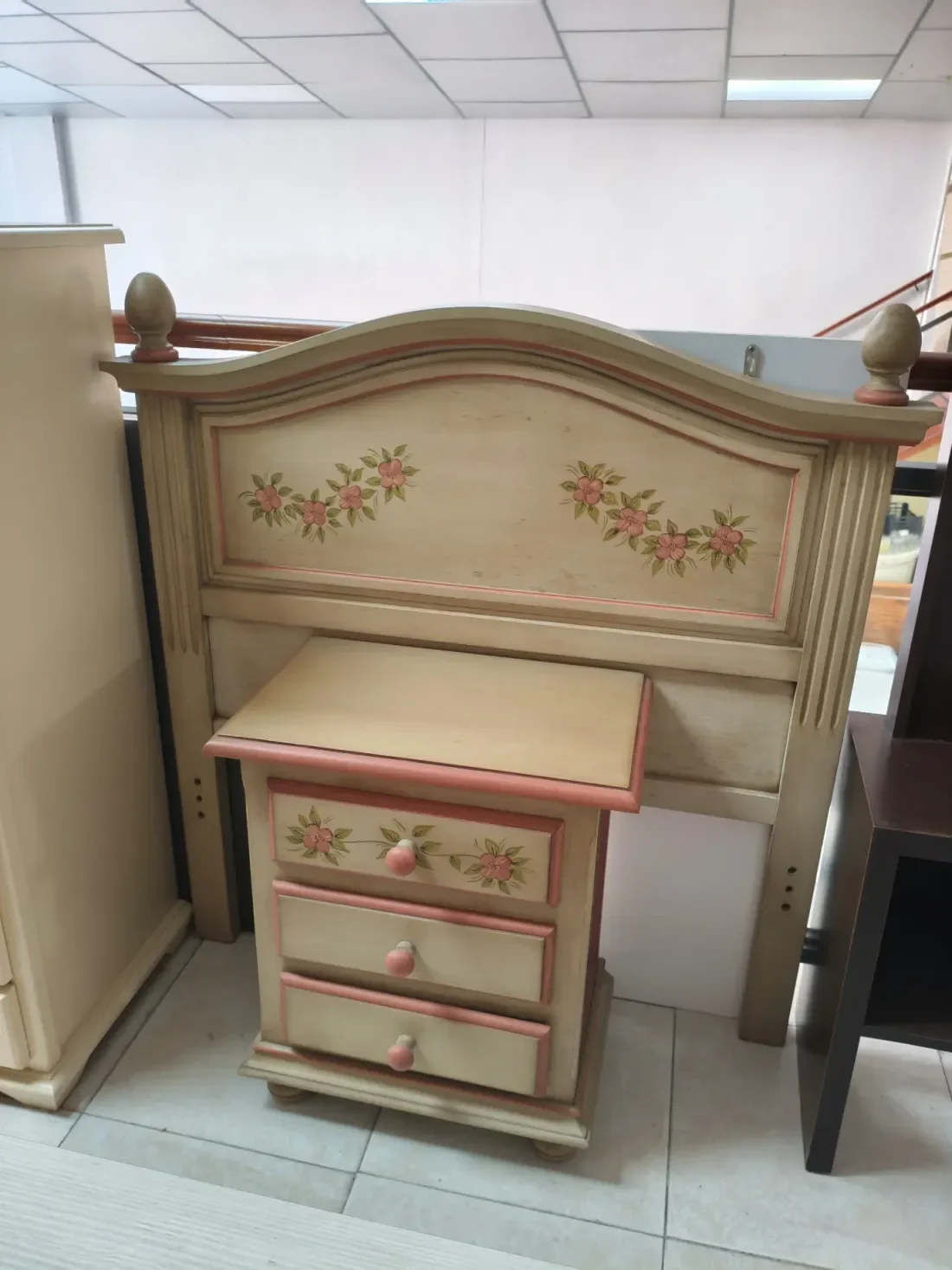 Diseño clásico compuesto por cabecero individual con mesita de 3 cajones a juego.
