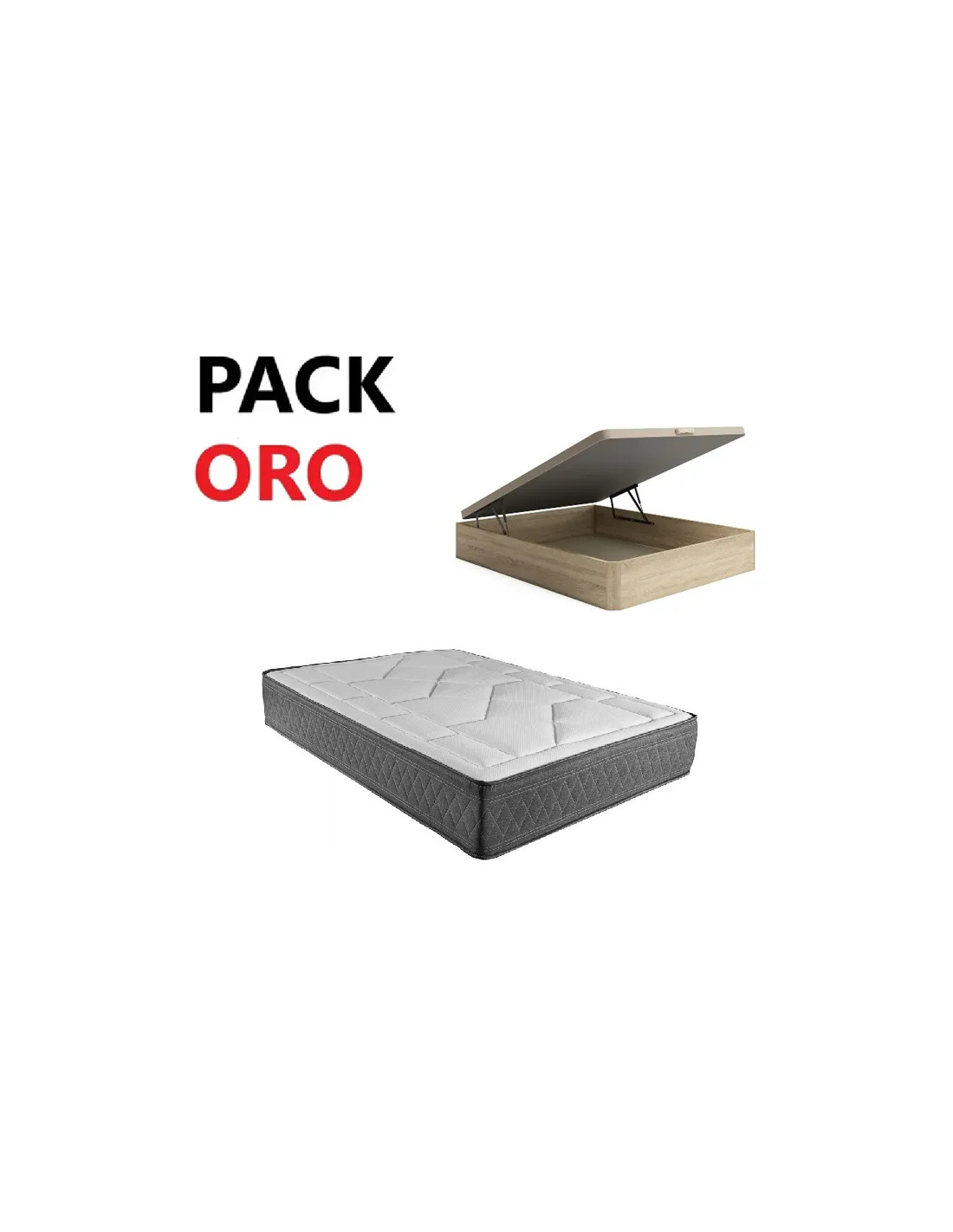 El pack de descanso premium compuesto por canapé de madera con patas macizas de haya + colchón viscoelástico de MUELLE ENSACADO de 28 cm. de altura