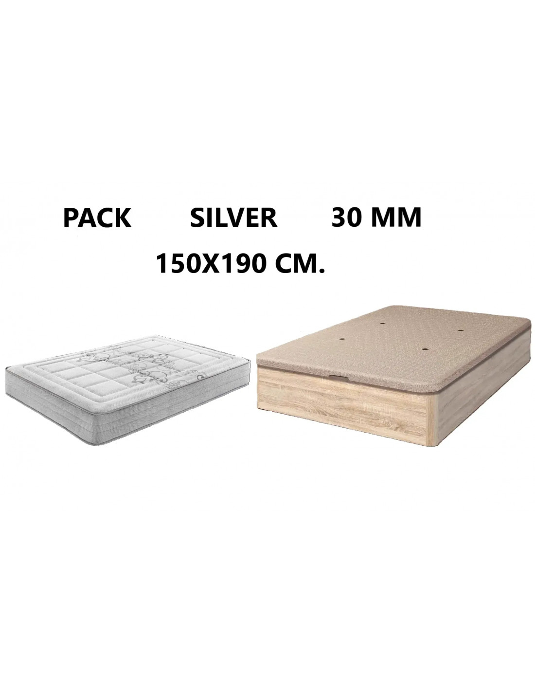 El pack de descanso Silver 30 al mejor precio; compuesto por canapé de 150x190 cm. de madera con costados de 30 mm de grosor + colchón Viscoelástico de 25 cm. de altura