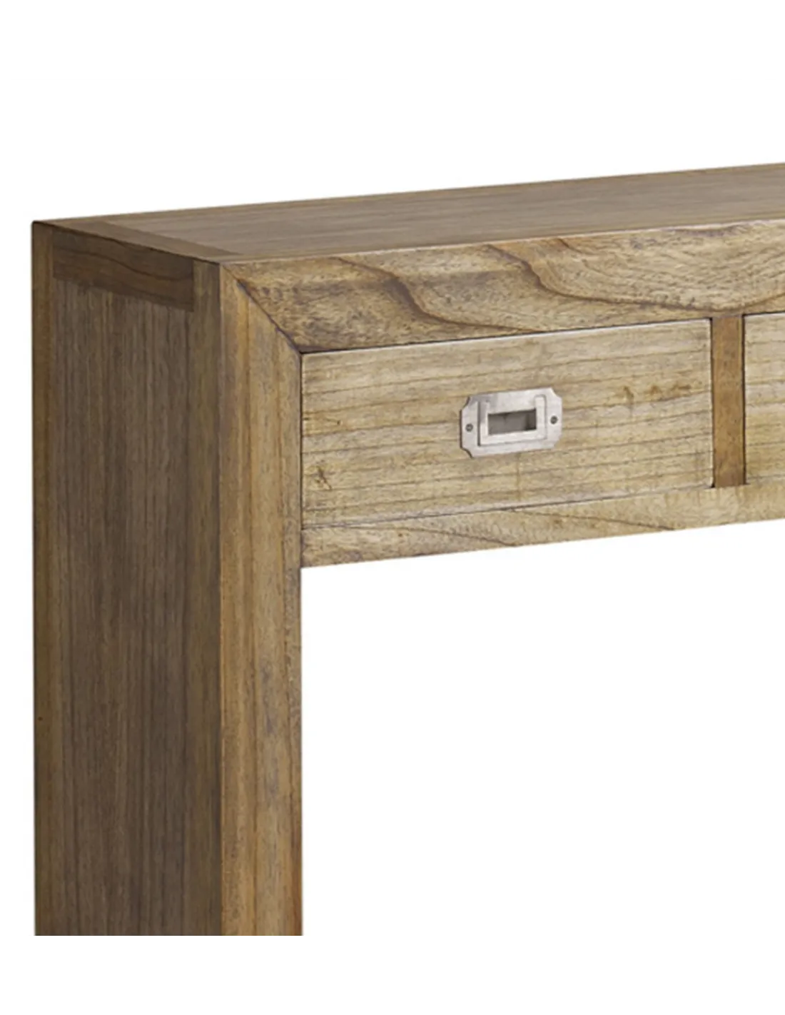 Disfruta del auténtico estilo colonial con esta consola de tres cajones fabricada en madera de Mindi.
