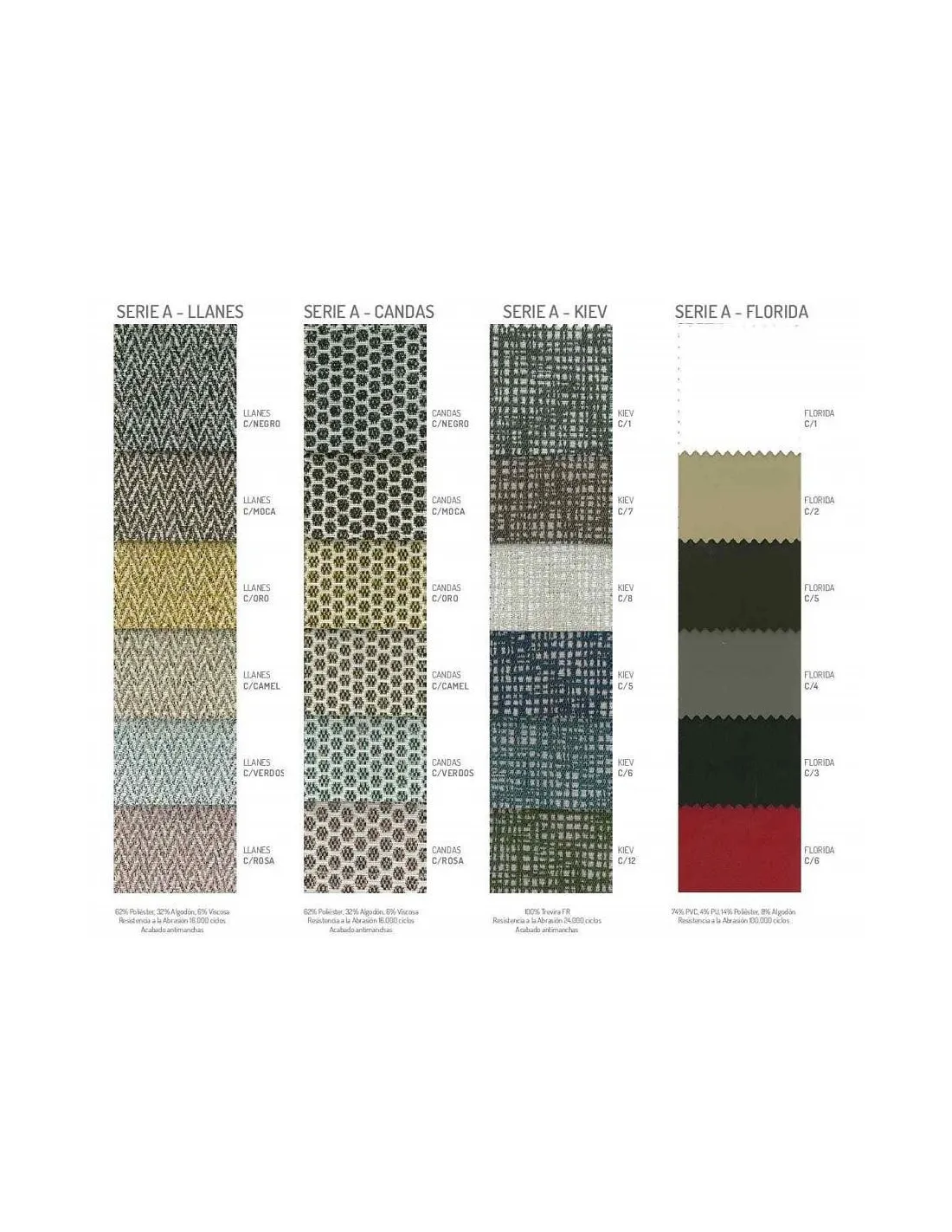 Estas sillas de comedor vienen disponibles en varias series de tapicería a elegir, todas ellas al mismo precio. Cuentan con tratamientos antimanchas y colores variados, que puede consultar en la pestaña "Acabados". Estos tejidos no tienen incremento de precio.