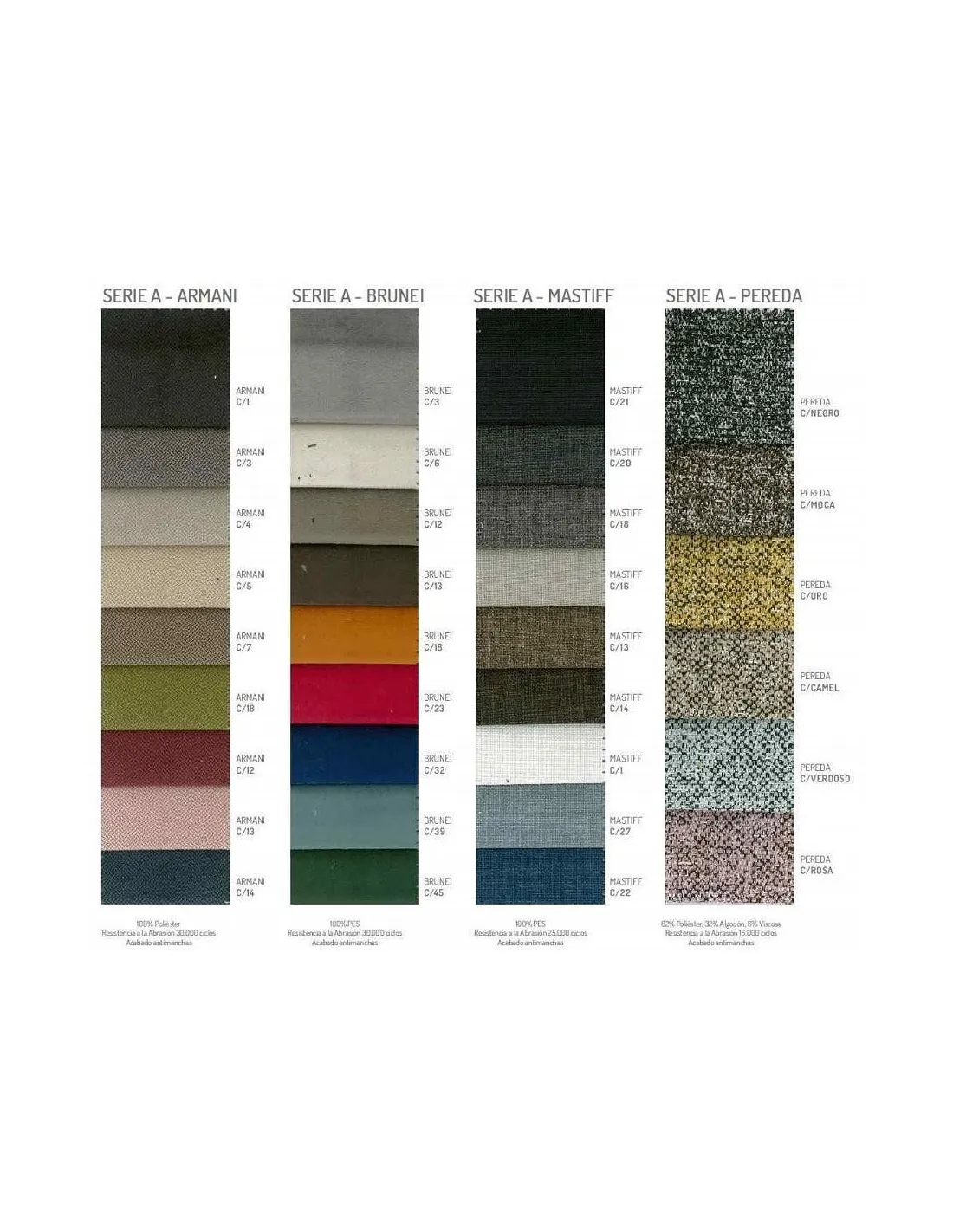 Estas sillas de comedor vienen disponibles en varias series de tapicería a elegir, todas ellas al mismo precio. Cuentan con tratamientos antimanchas y colores variados, que puede consultar en la pestaña "Acabados". Estos tejidos no tienen incremento de precio.