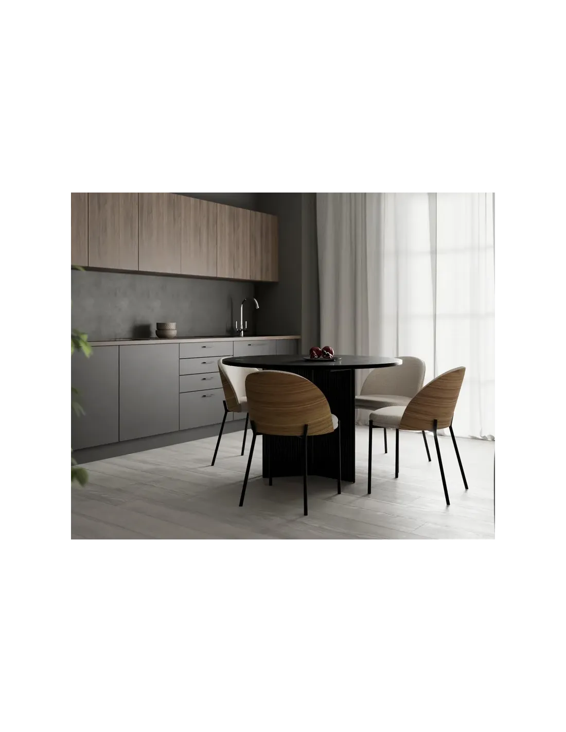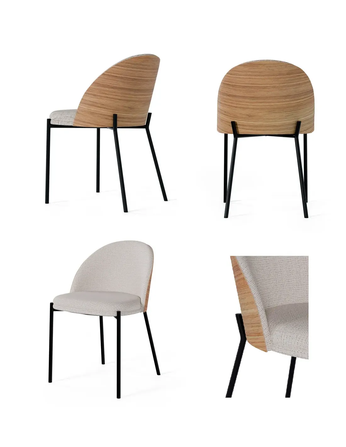 Colección sillas de primera calidad de diseño actual que combina materiales de diferente naturales como la madera, el metal y los tapizados antimanchas.
