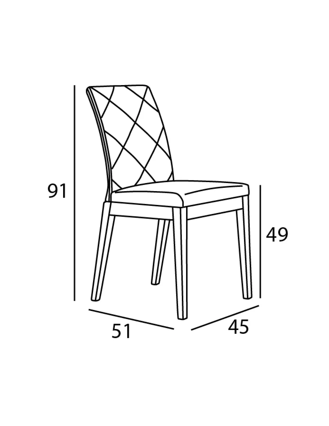 Elegante y comodísima silla de diseño clásico moderno con su característico respaldo de costuras formando rombos tapizada a medida sobre su estructura de patas de madera lacadas o teñidas en el acabado que se elija.
