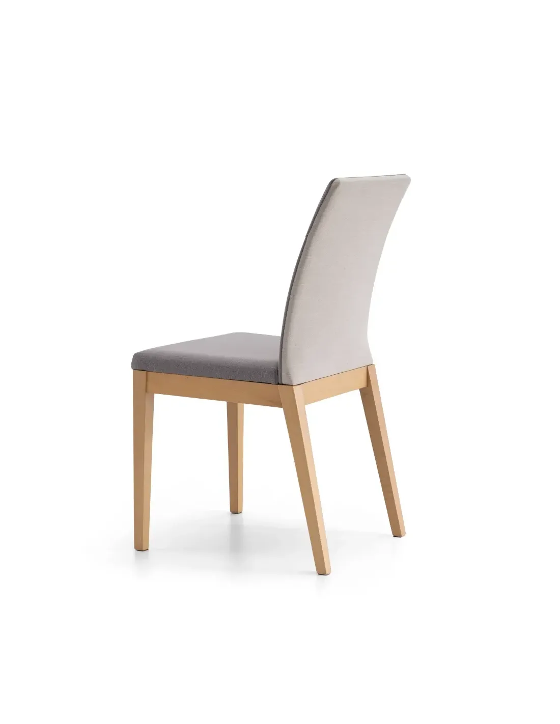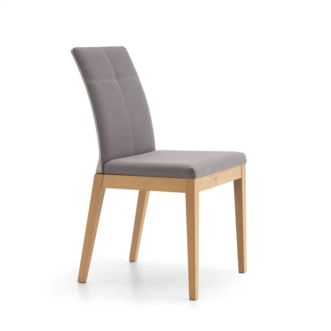 Elegante y comodísima silla de diseño clásico moderno con su característico respaldo de costuras formando rombos tapizada a medida sobre su estructura de patas de madera lacadas o teñidas en el acabado que se elija.