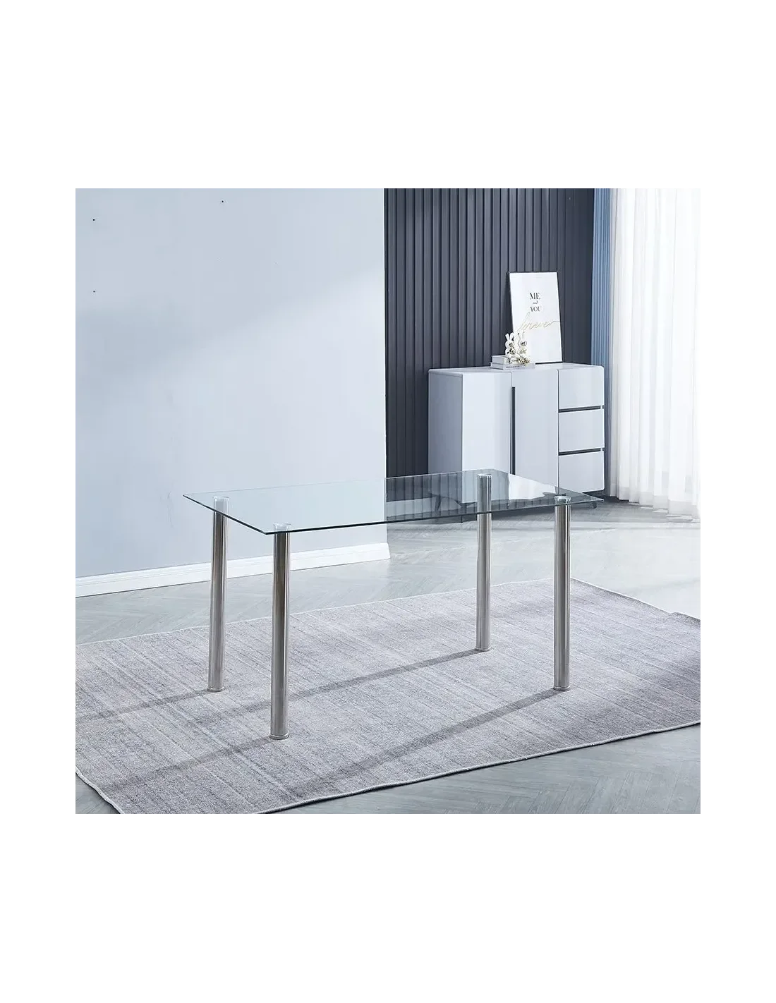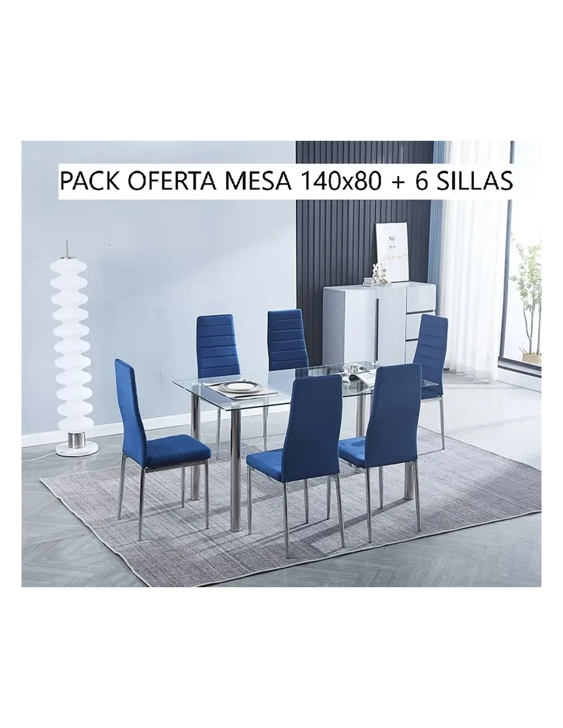 Precio marcado para 6 sillas y para el pack de 6 sillas + mesa de comedor cristal 140x80 cm. con pata cromada.