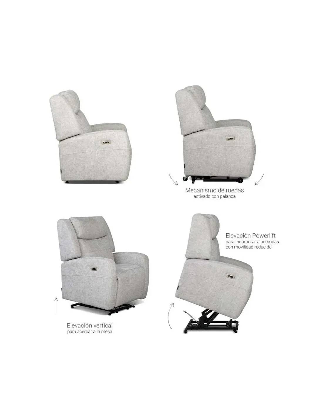 Sillón relax con un motor y sistema power lift modelo Koke con altura de 111 cm.