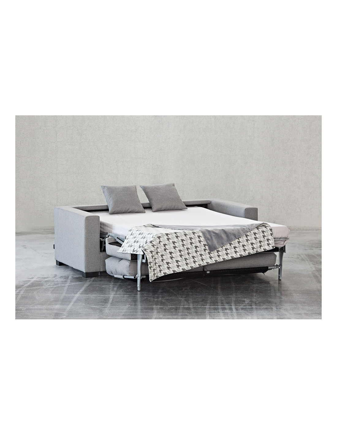 Sofá cama de primera tapizado en tejido antimanchas. Apertura italiana, suave y sencilla, con colchón de HR de 12cm. de grosor con tratamiento Aloe Vera.