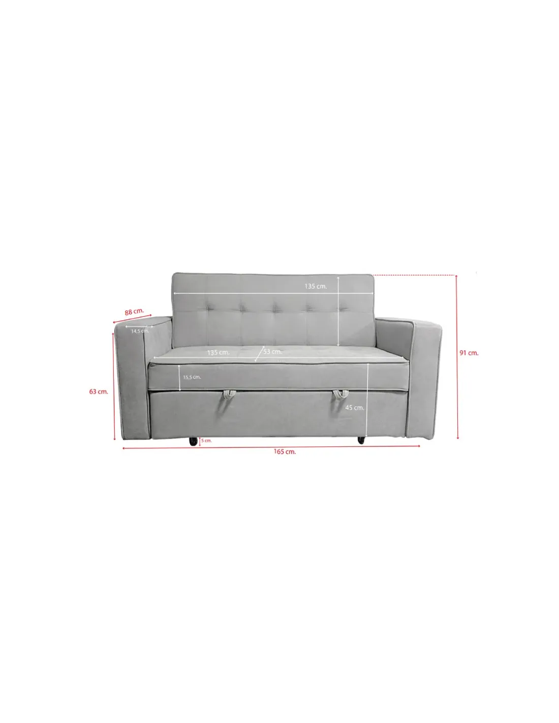 Sofá de largo 1,65 metros convertible en cama de 135x180 cm.
