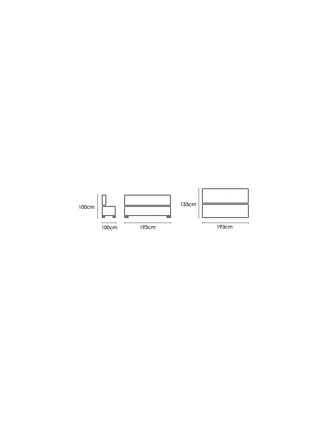 - Medidas con respaldo sin abatir: 100 x 190 cm (Largo x Fondo)