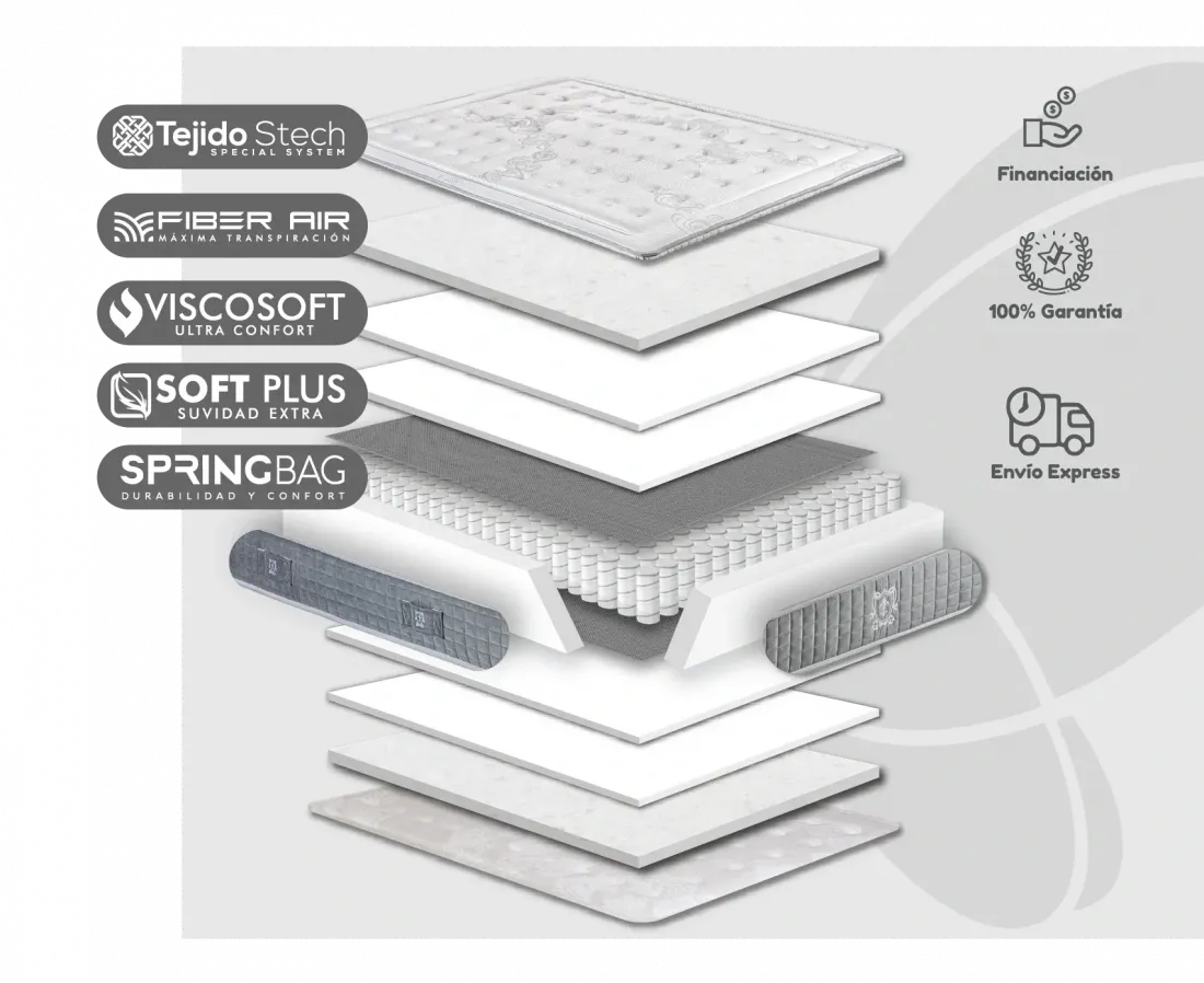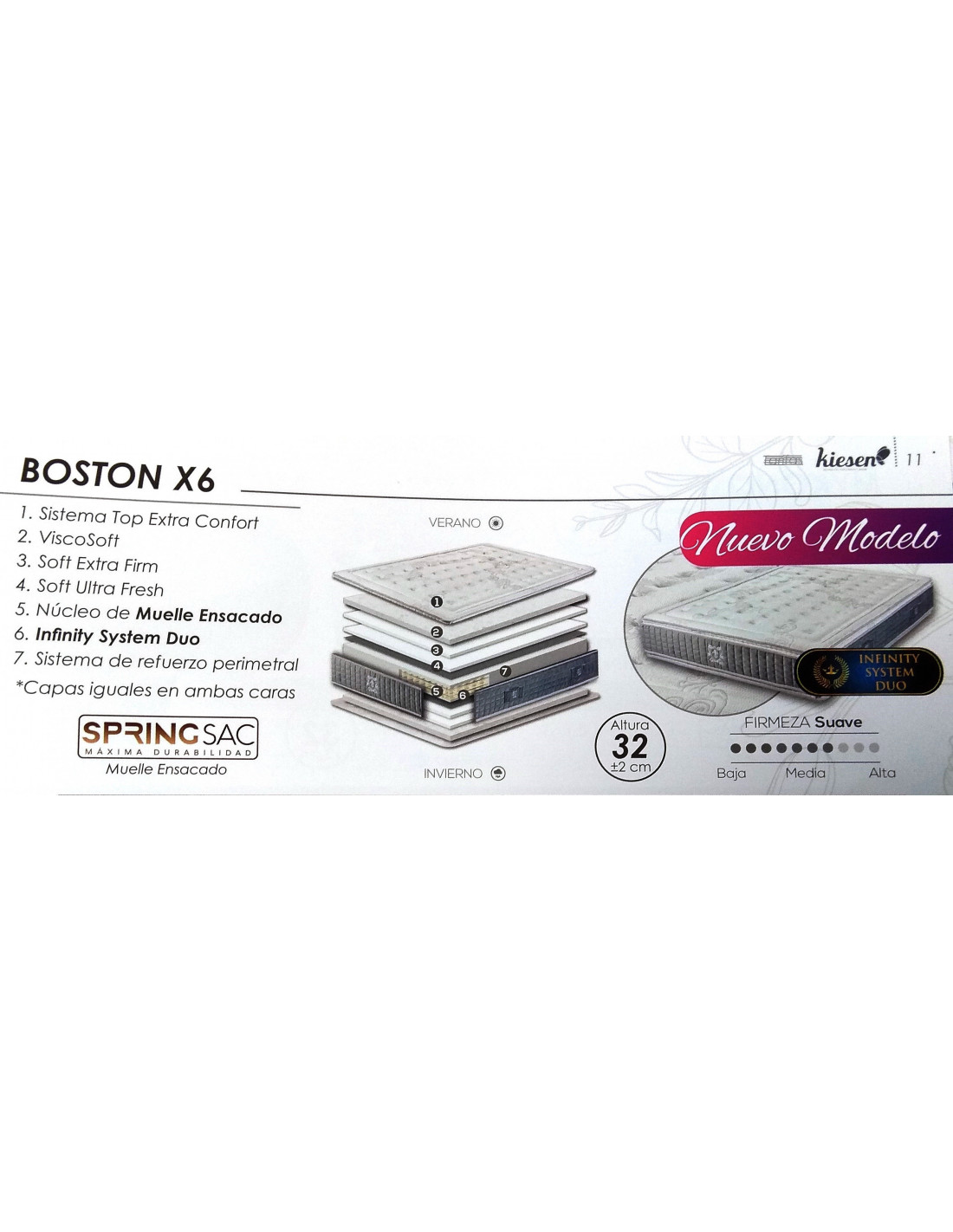 Colchón viscoelástico Boston X6 con sistema top extra confort y Infinity System Duo