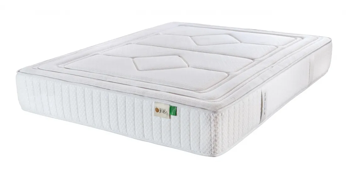 Toda la gama de colchones Joisa están fabricados con componentes electrobiológicos, es decir, tienen total ausencia de componentes metálicos. Se usan núcleos de muelle eensacado de última generación, así como espumaciones como el HR o los núcleos termofusionados de alta densidad. Acolchados con viscoelástica de alta calidad en diferentes densidades según el modelo y tapizados hipoalergénicos Strech y Qualofill de sensación agradable y alta transpirabilidad.