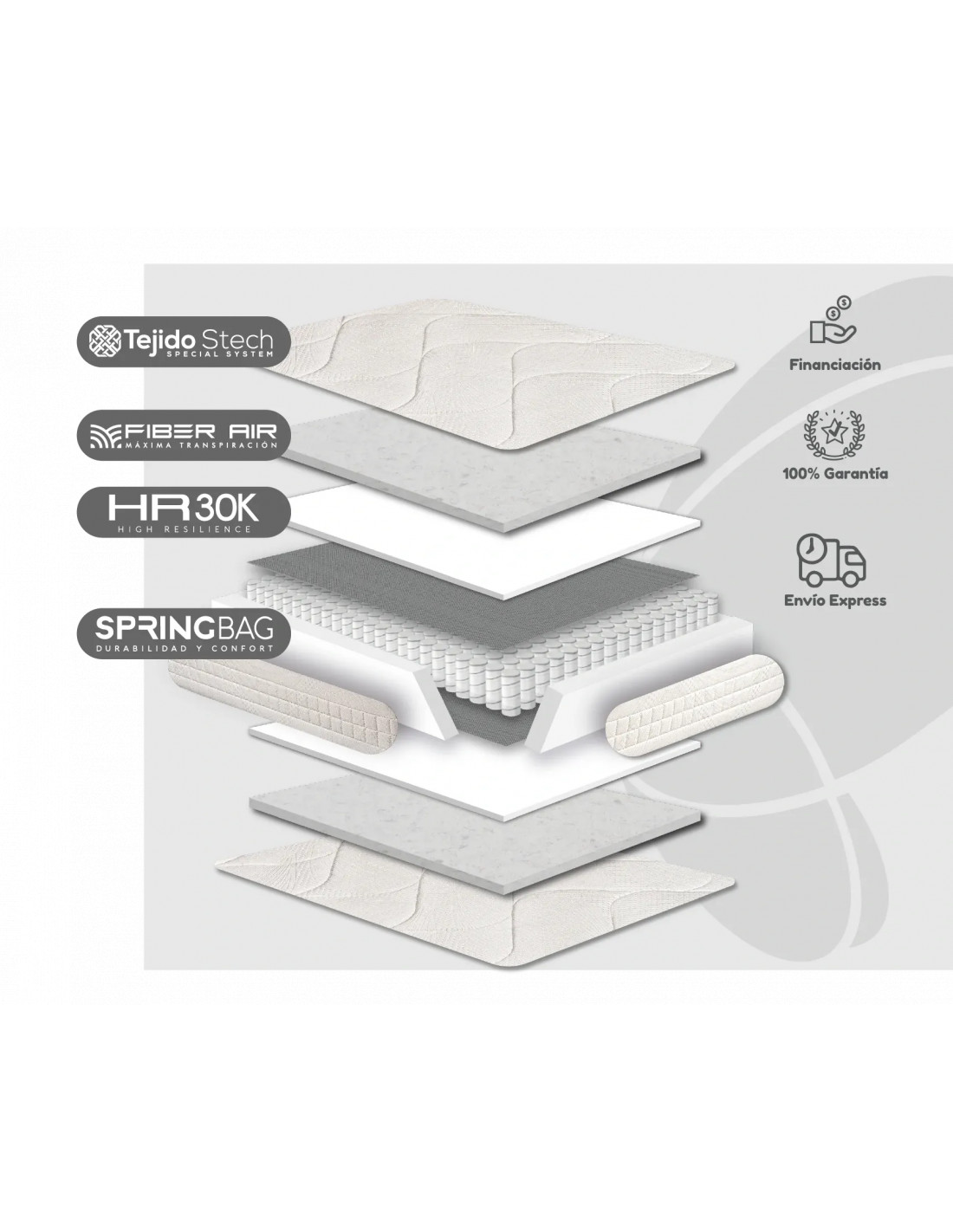 Viene reforzado en su perimetro con un sistema de refuerzo lateral para evitar hundimientos en las zonas más sensibles del colchón.