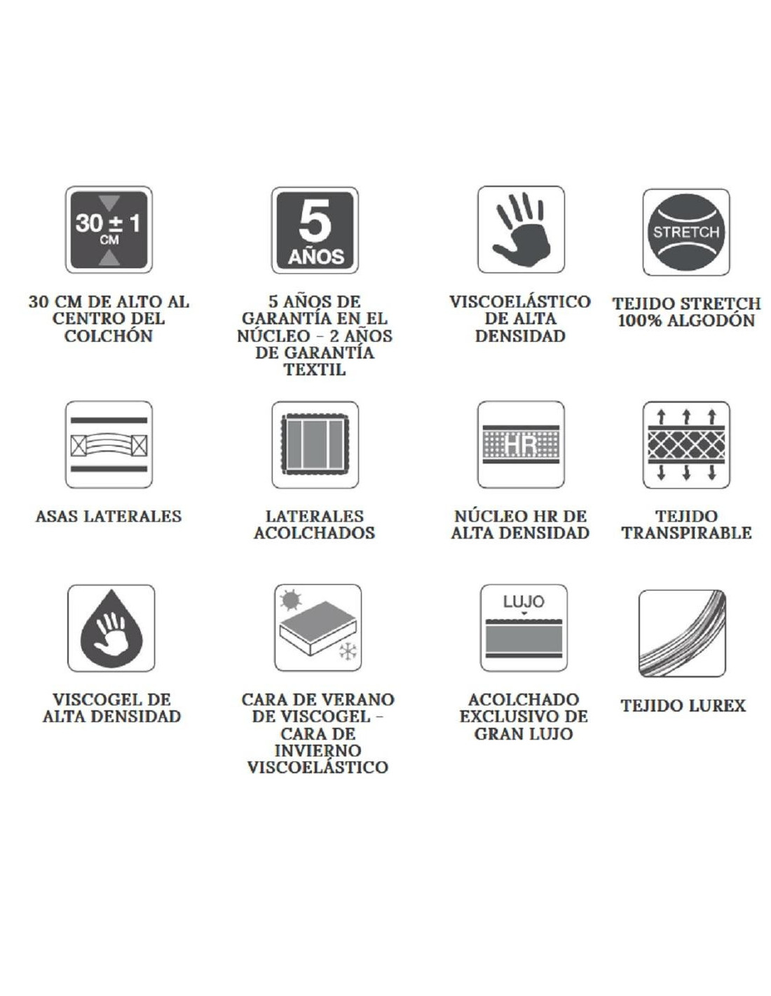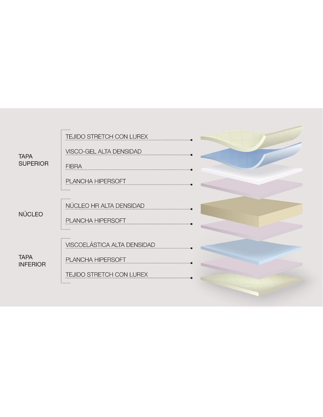 La cara para meses cálidos está revestida por visco-gel, que proporciona una temperatura más fresca a la vez que mantiene libre de humedad. La otra cara, de viscoelástico de alta densidad, distribuye mejor el calor en los meses de invierno y proporciona una mayor sensación de comodidad y confort.