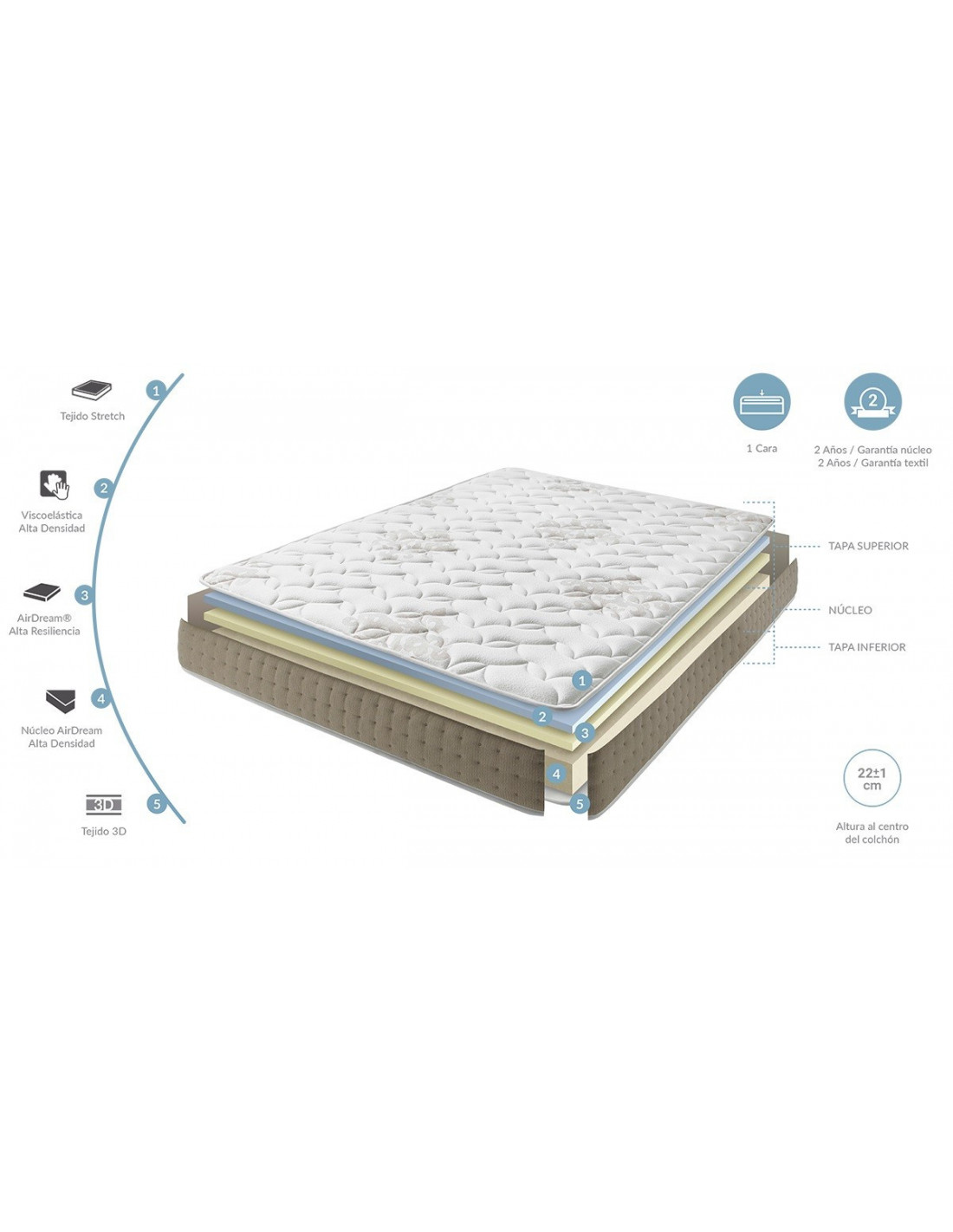 El colchón Dupen Marte está fabricado pensando en usar una de sus caras, donde se encuentra el acolchado viscoelástico sobre un núcleo de Airdream de alta densidad.