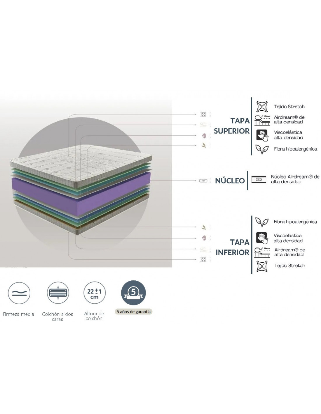 - Acolchado Airdream de alta densidad