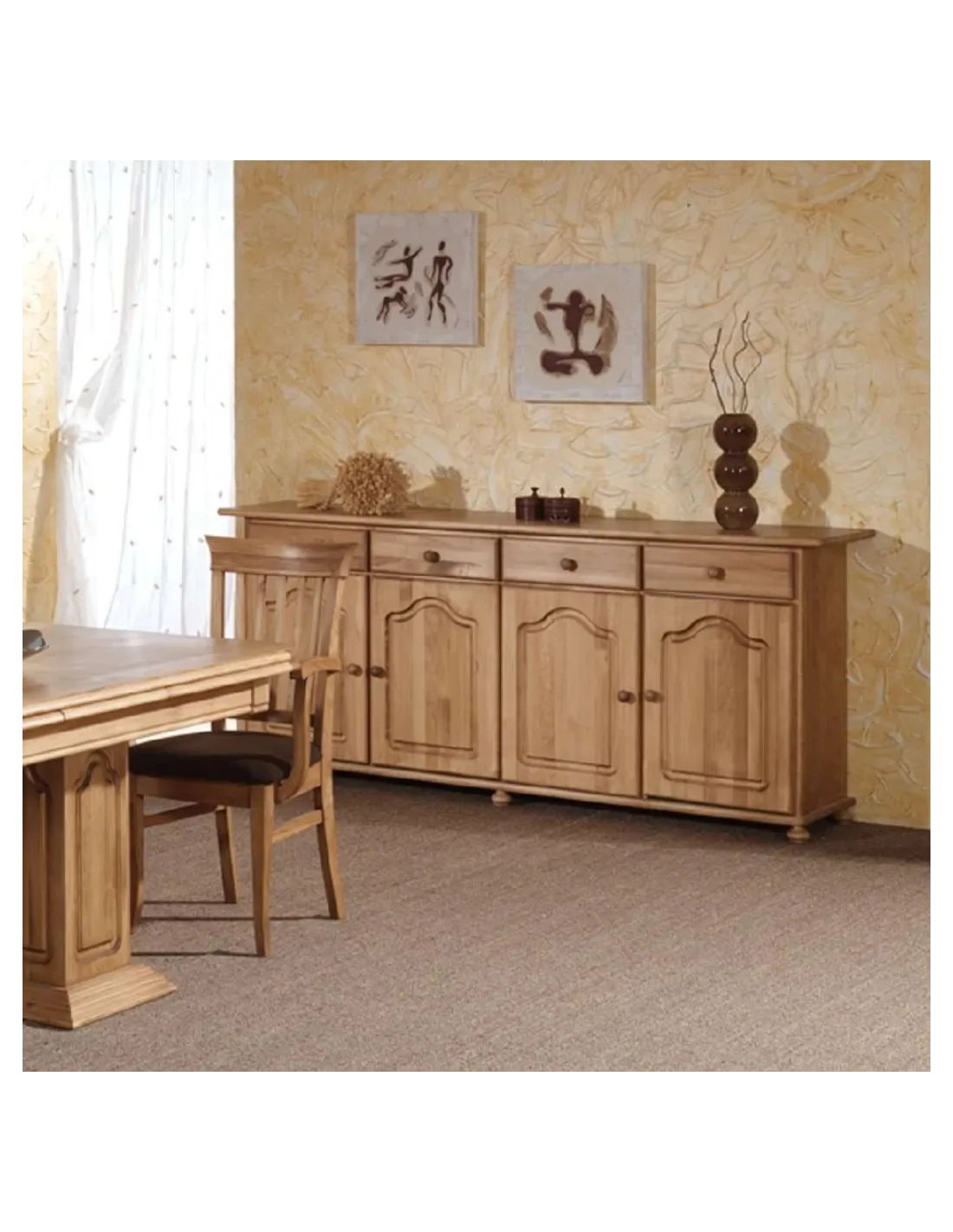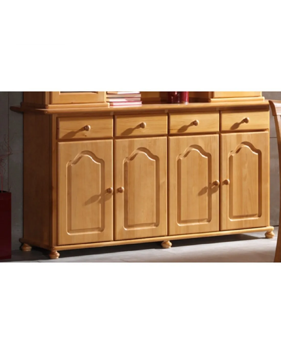 Aparador Provenza con cuatro puertas y cuatro cajones con 180 / 212 cm. de largo hecho en madera de pino macizo