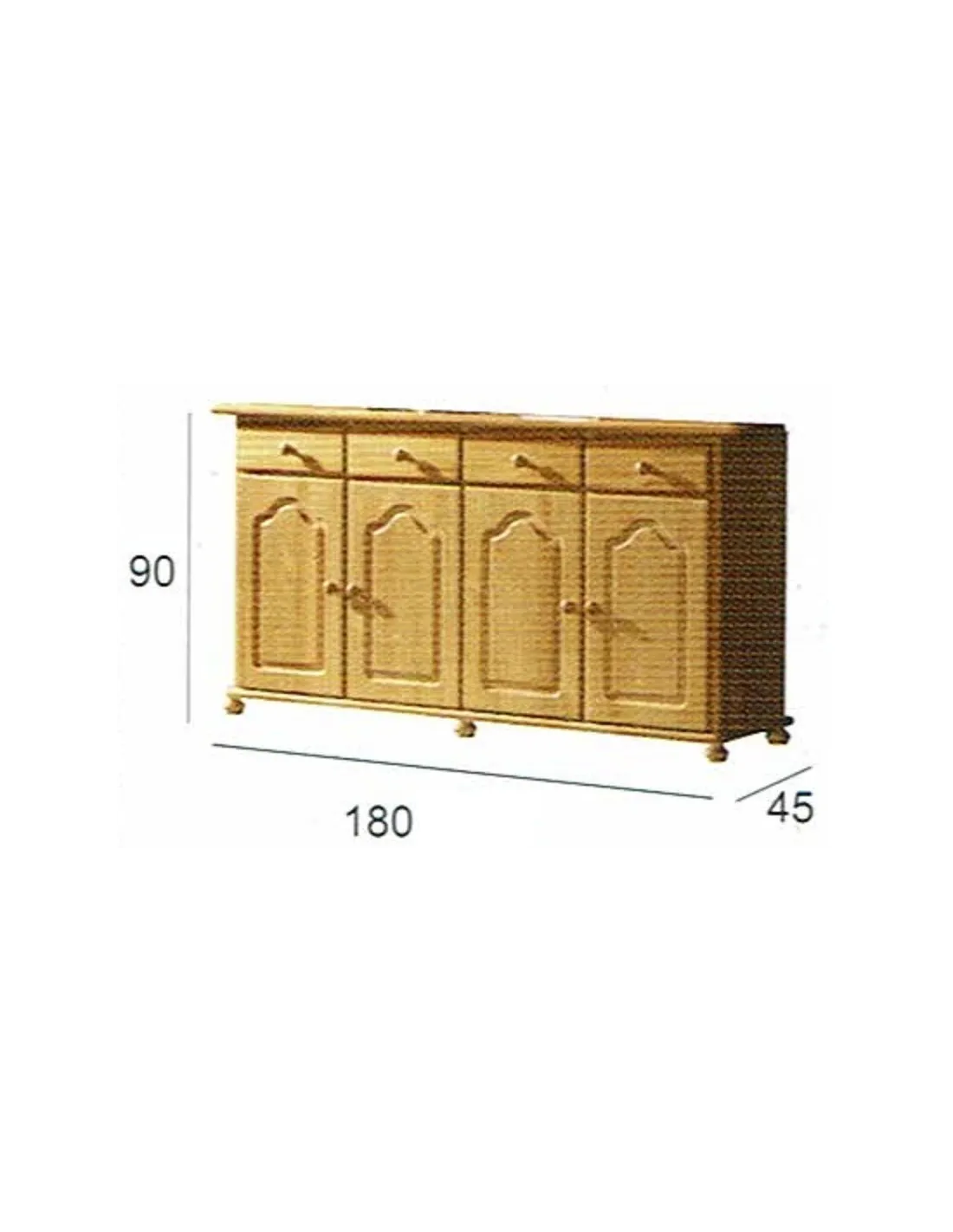 - Aparador Provenza cuatro puertas cuatro cajones: alto 90 cm. Largo 180 / 212 cm. Fondo 45 cm.