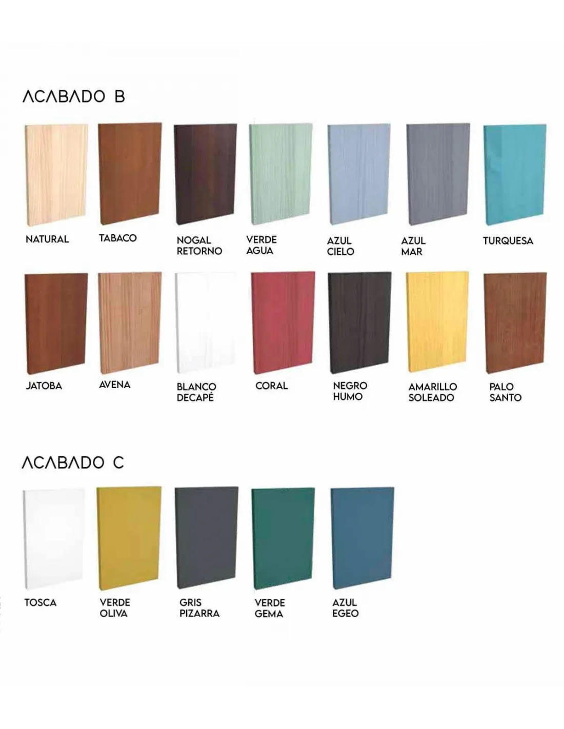 Siempre a la vanguardia, Grupo Seys pone a su disposición una amplia paleta de colores y acabados de tendencia que complementan al diseño. Por definición, estos muebles se encargan en color único, pero nos permite combinar dos o más colores en el mismo mueble. Si está interesado en combinar acabados, póngase en contacto con la tienda.