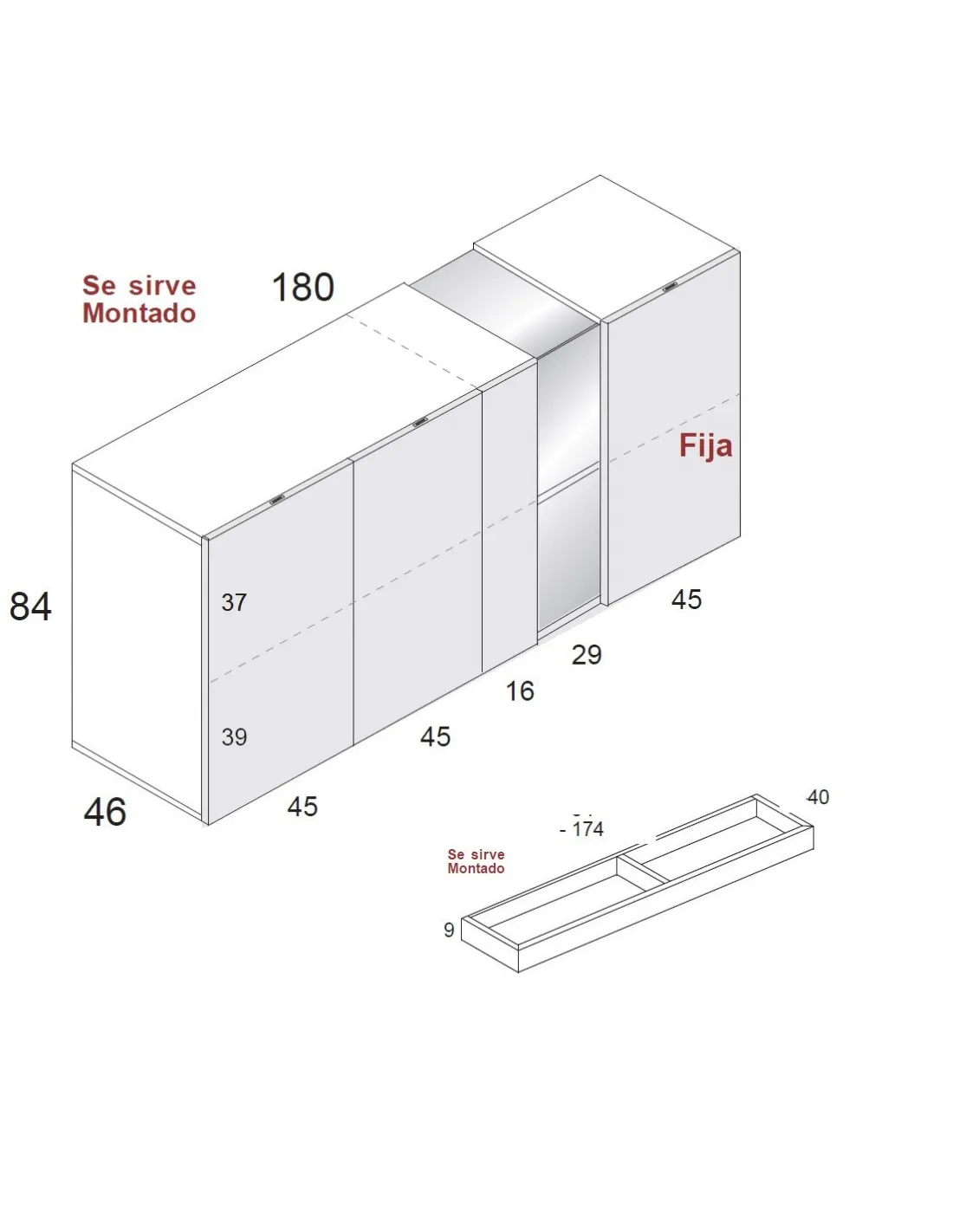 Tenemos opciones de catálogo que no están incluidas en esta ficha de producto pero que se puede optar pr configurar a su manera: tiradores, patas, medidas, módulos independientes... Todos los módulos del catálogo están disponibles para su venta por separado.