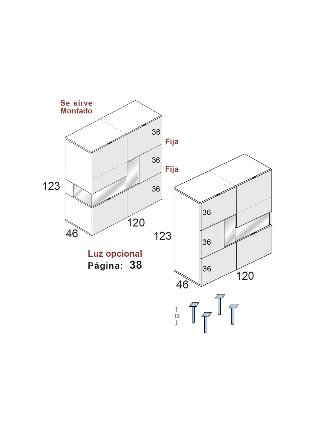 Tenemos opciones de catálogo que no están incluidas en esta ficha de producto pero que se puede optar por configurar a su manera: tiradores, patas, medidas, módulos independientes...