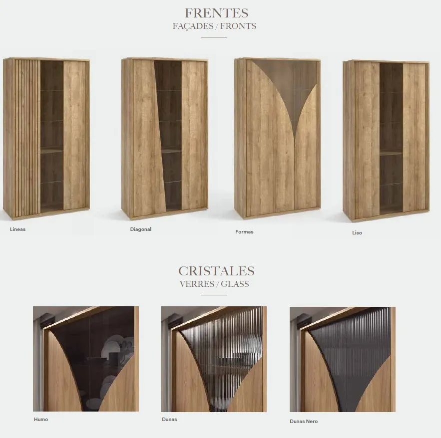 Estos muebles pueden ser personalizados en la estructura, accesorios y los frentes de puertas/cajones, combinando los colores de la siguiente manera: