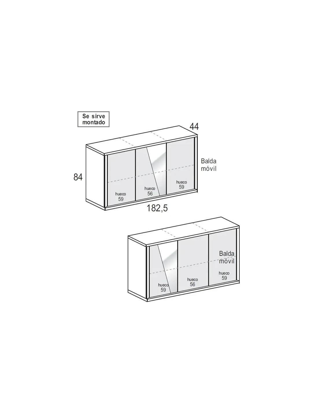 Este mueble Aparador 3P Diagonal viene con un dos medidas de largo disponibles: 153,5 y 182,5 cm.