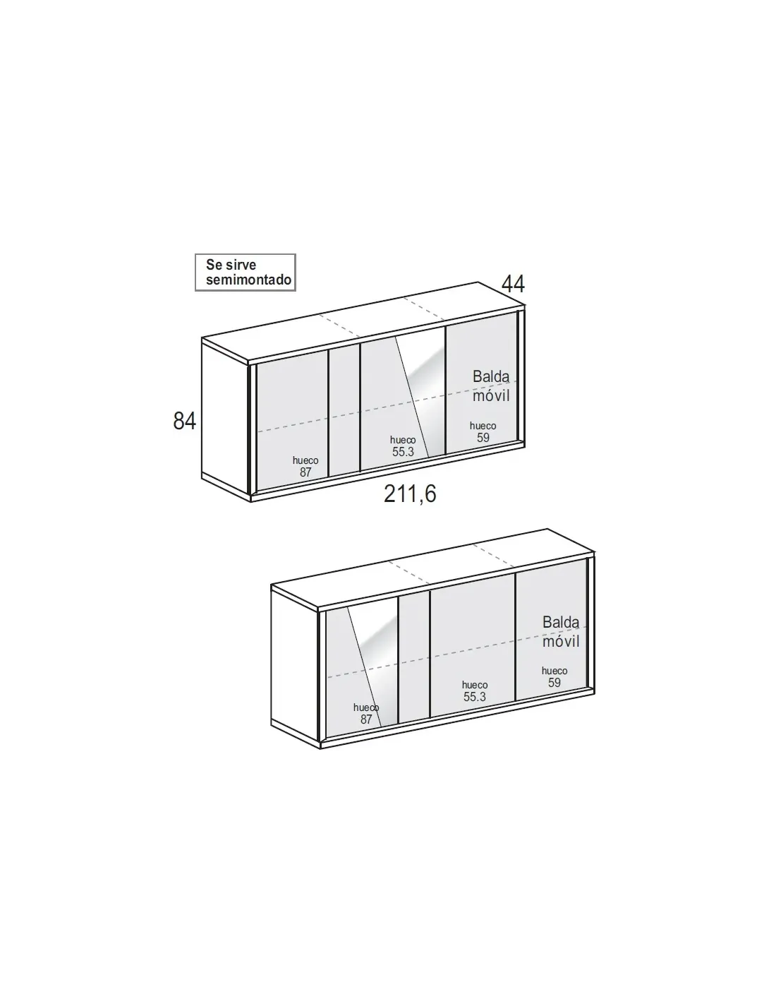 Este mueble Aparador 4P Diagonal viene con un medida de largo de 211,6 cm.