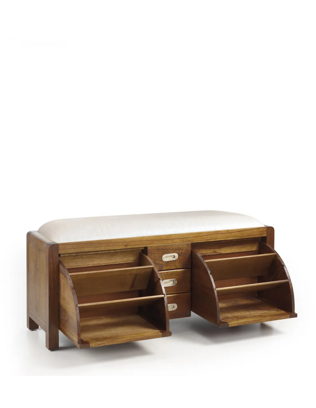 Zapatero fabricado en madera maciza de Mindi con inconfundible diseño colonial con cajones y puertas