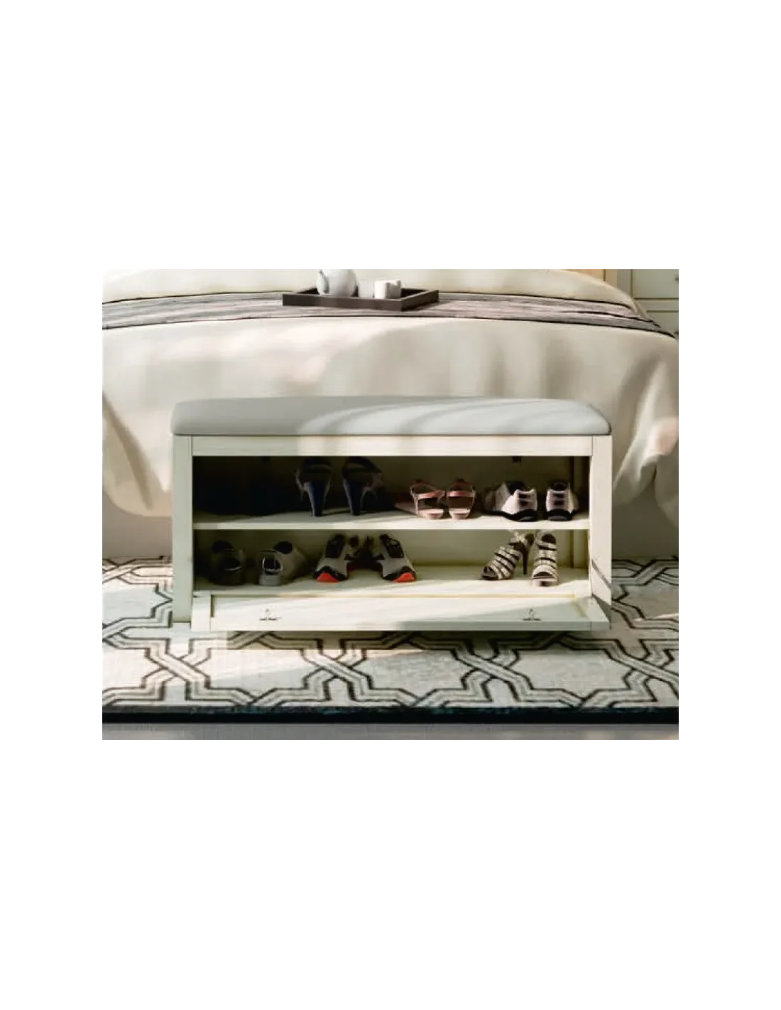 Arcón zapatero cruceta fabricada en madera con asiento pretapizado