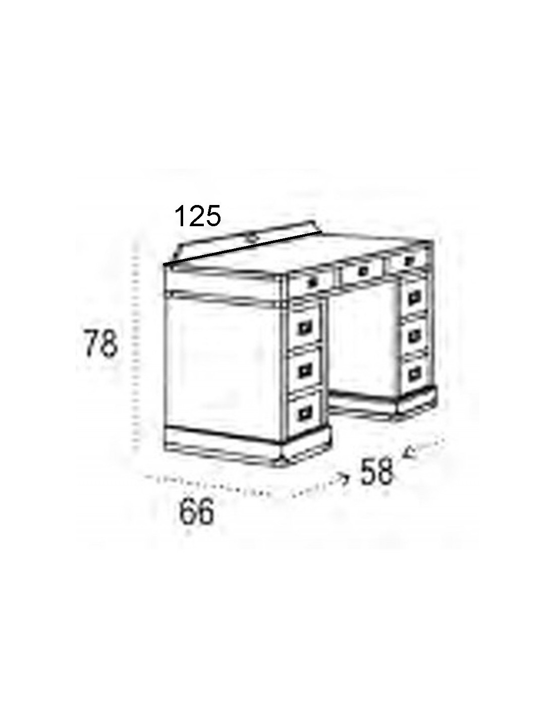 Este mesa de despacho colonial está fabricada en madera de Fresno y tiene las siguientes medidas (largo x alto x fondo en cm.): 125 x 78 x 66 (hueco central de 58)